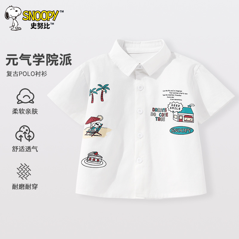 스누피 여름 아동용 순면 반팔 셔츠 남아용 만화 자수 다용도 디자인 대학 스타일 셔츠