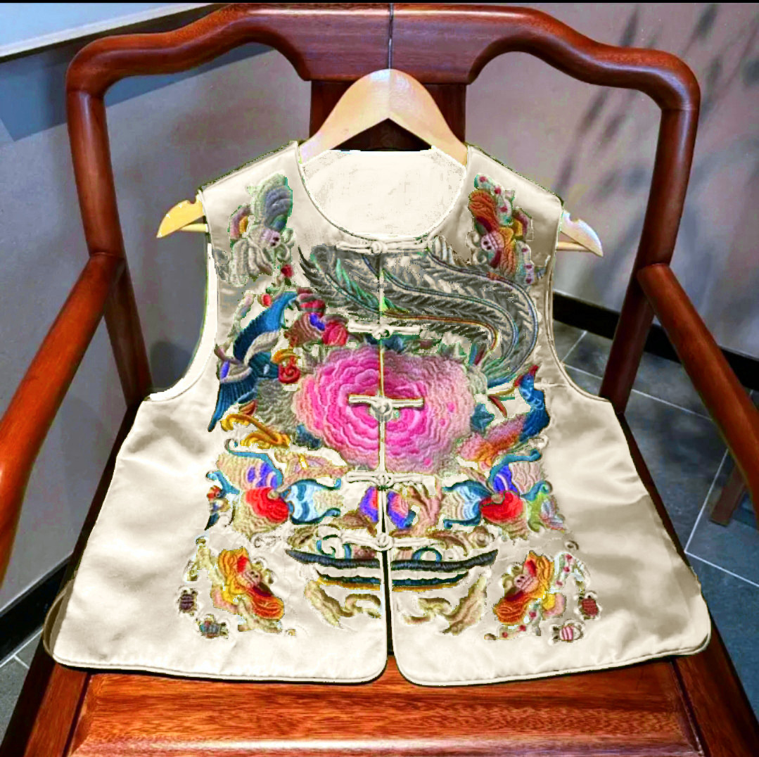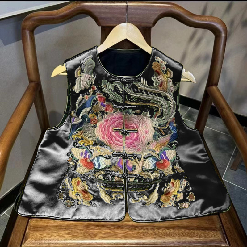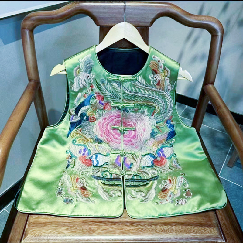 중국 자수 중공업 골든 피닉스 조끼 여성 2025 년 봄과 가을 새로운 우아한 조끼 버클 내셔널 스타일 레트로 웨이스트 코트