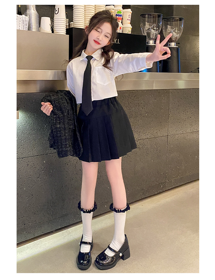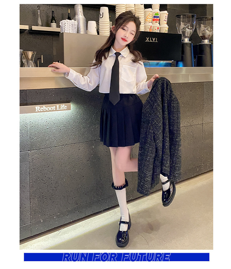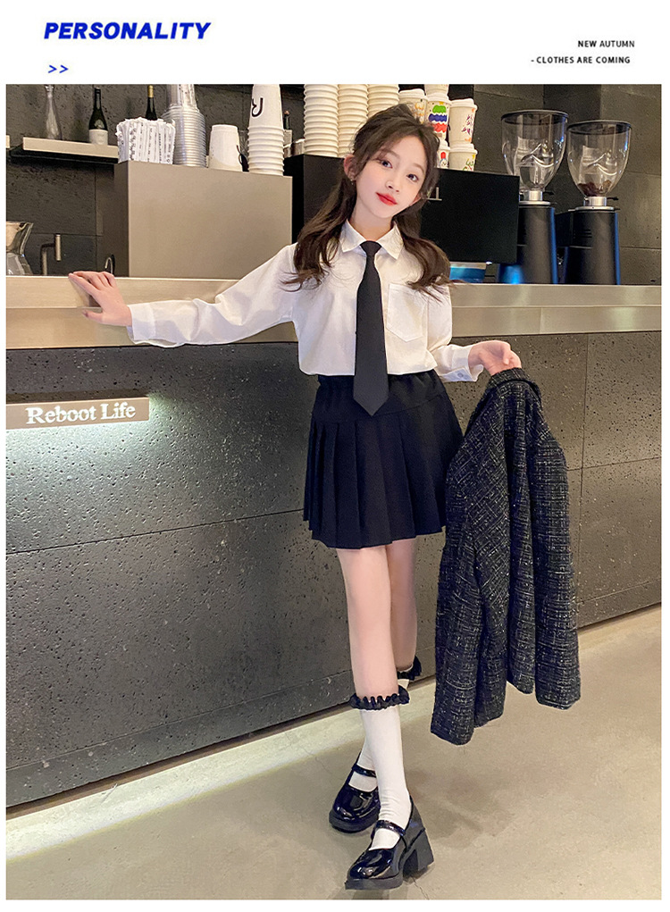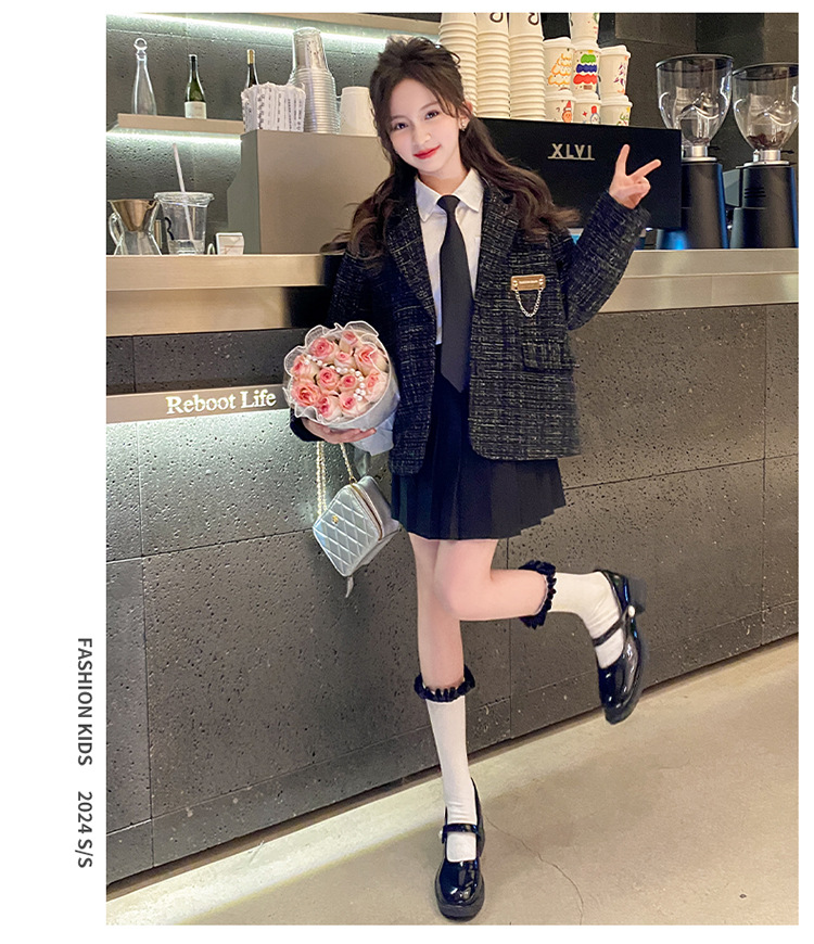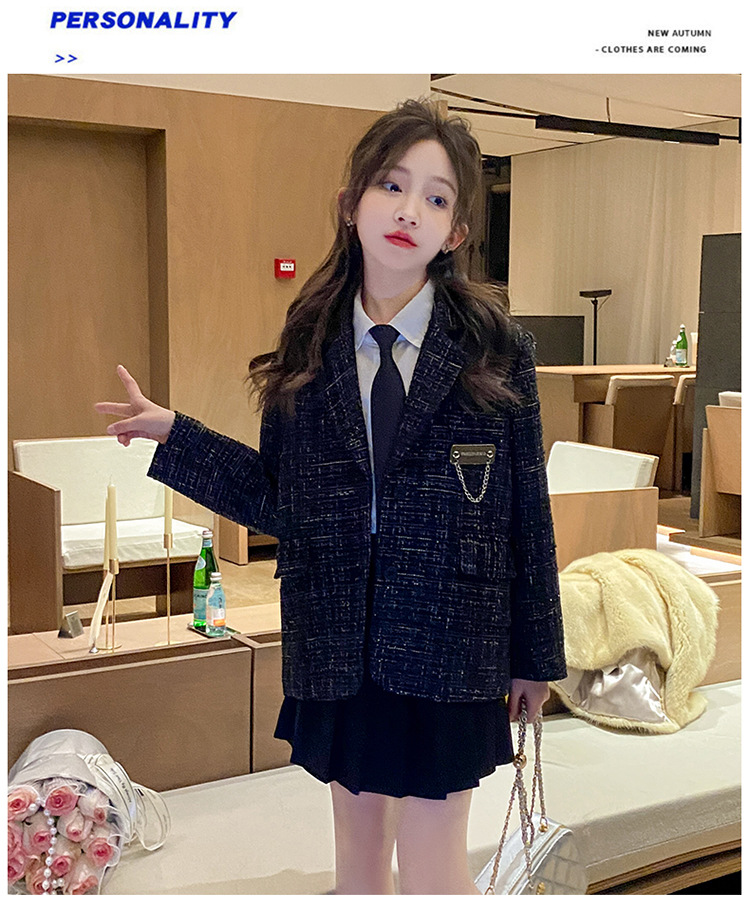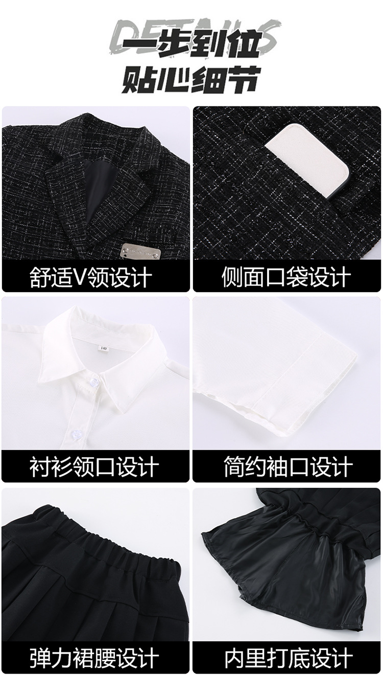 소녀 세트 봄과 가을 2025 새로운 패션 우아한 하이 블랙 샤넬 스타일 코트 대학 스타일 JK 세트스토어 가기
