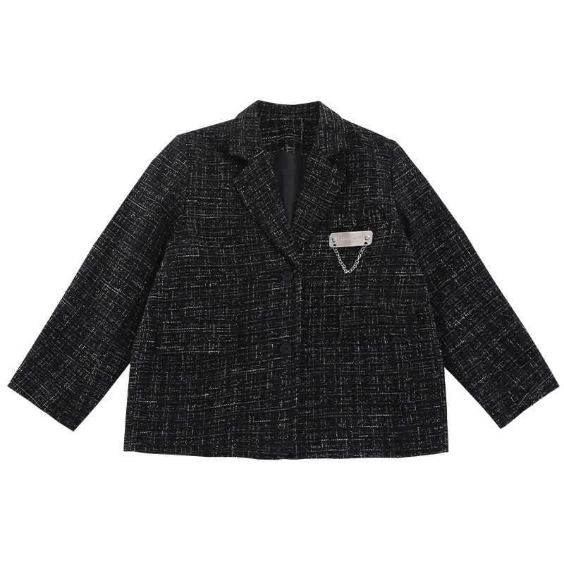 소녀 세트 봄과 가을 2025 새로운 패션 우아한 하이 블랙 샤넬 스타일 코트 대학 스타일 JK 세트