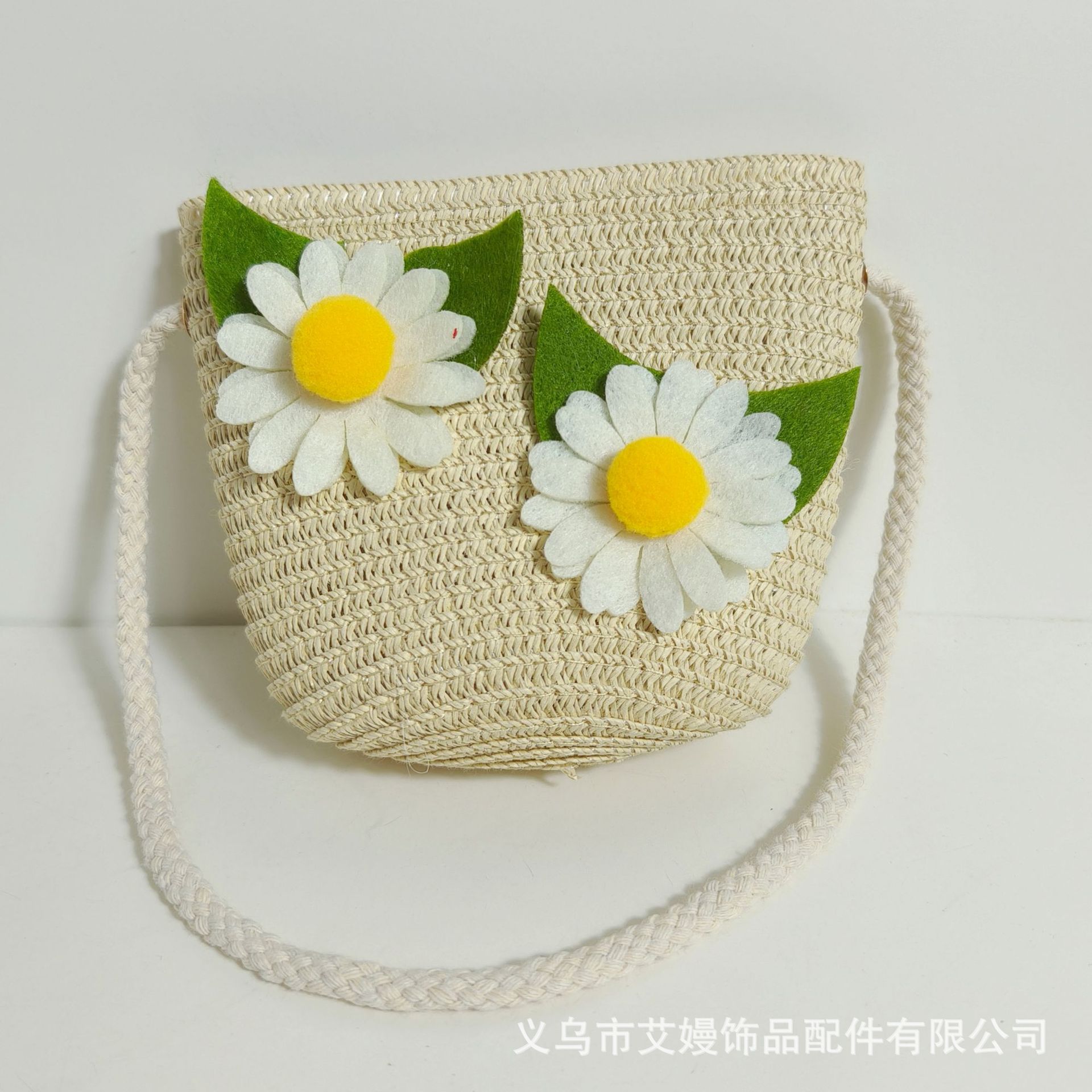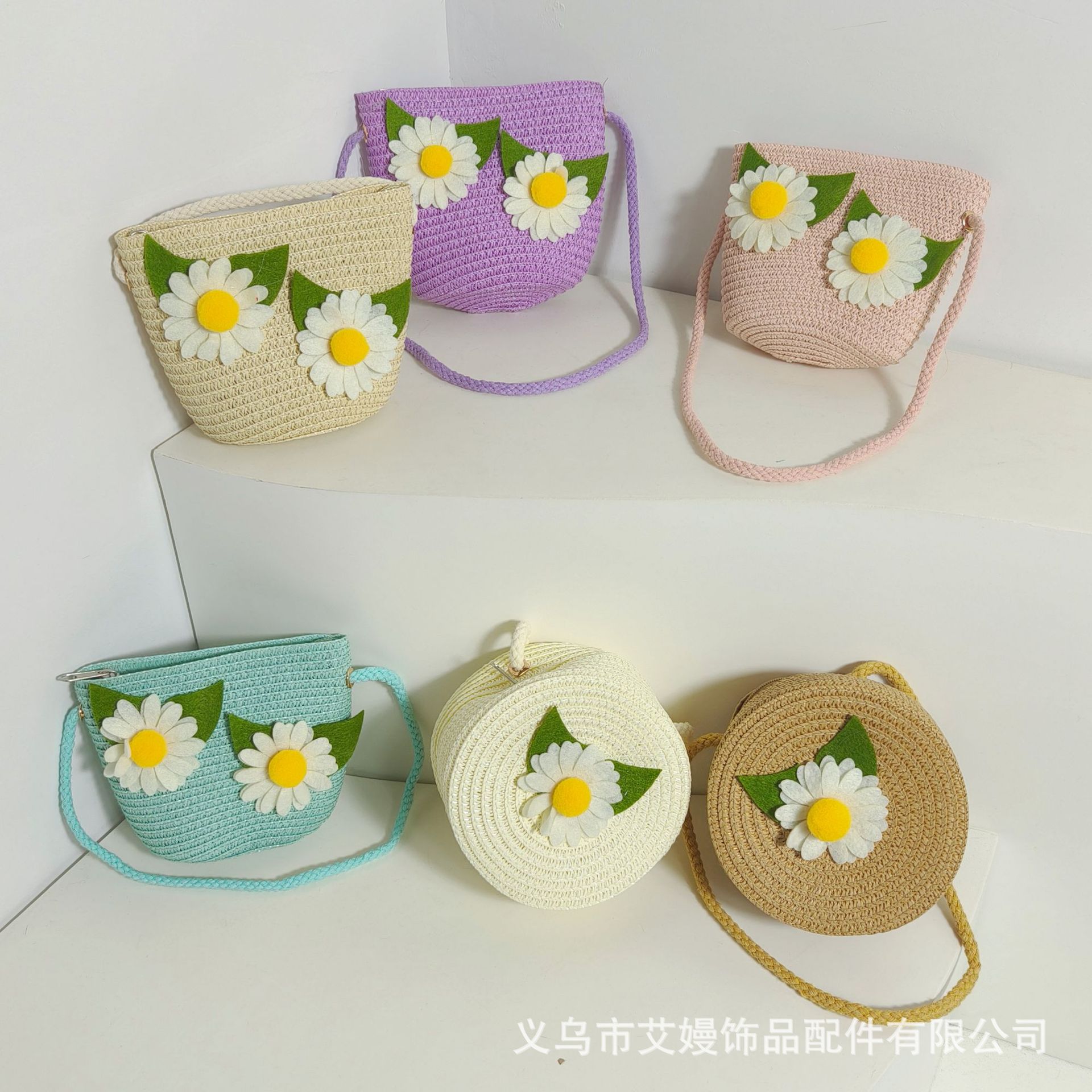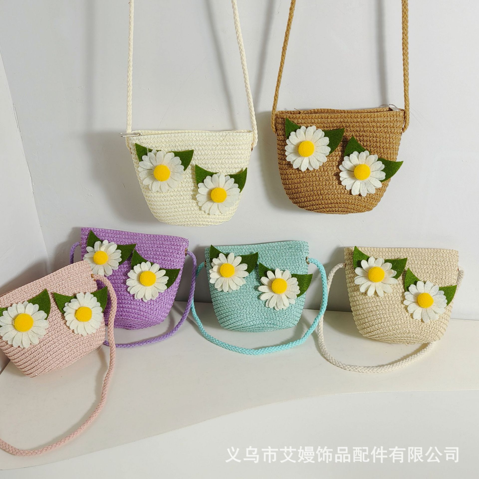 소녀 여름 새로운 어린이 수제 짠 데이지 가방 귀여운 동전 지갑 올 매치 크로스 바디 백 도매스토어 가기