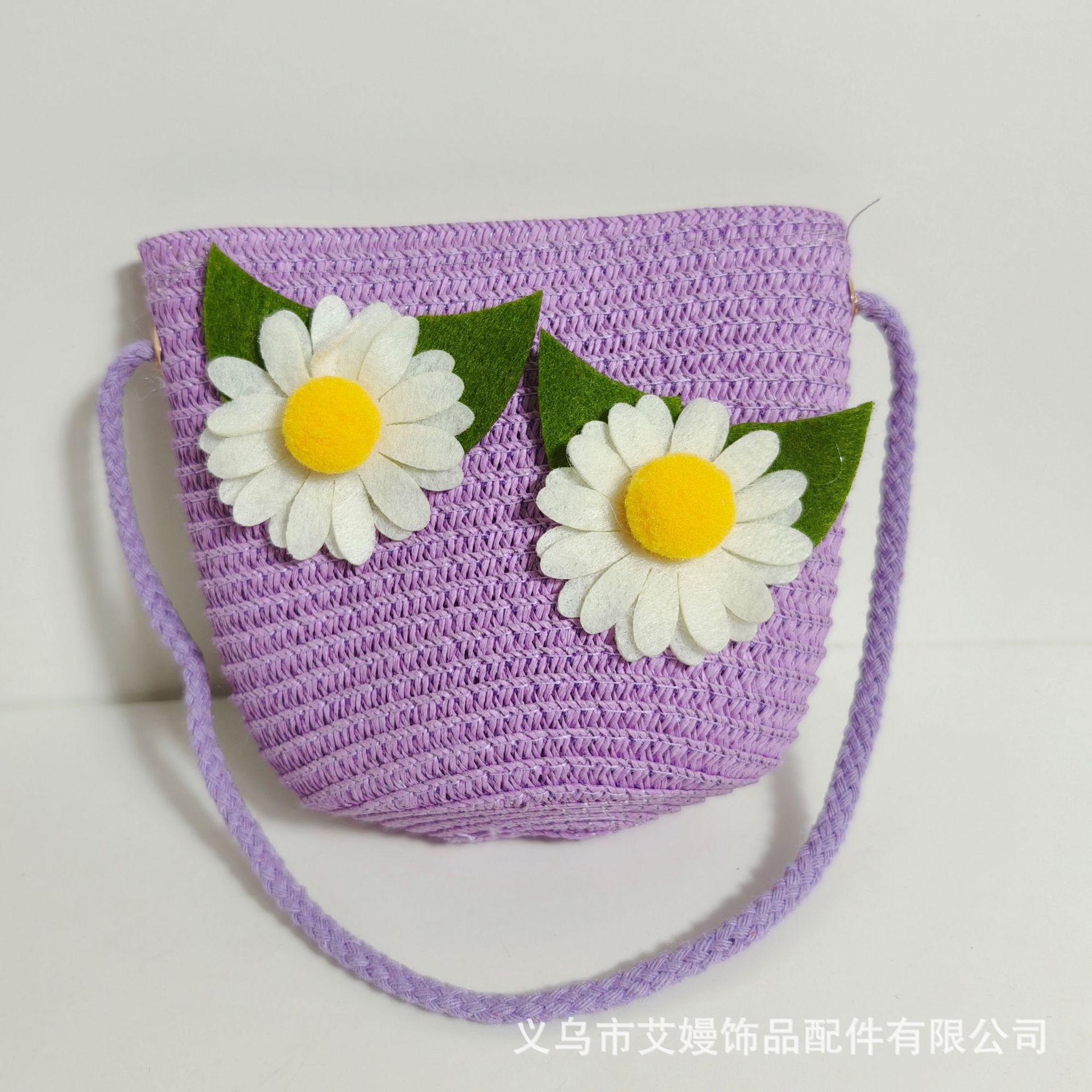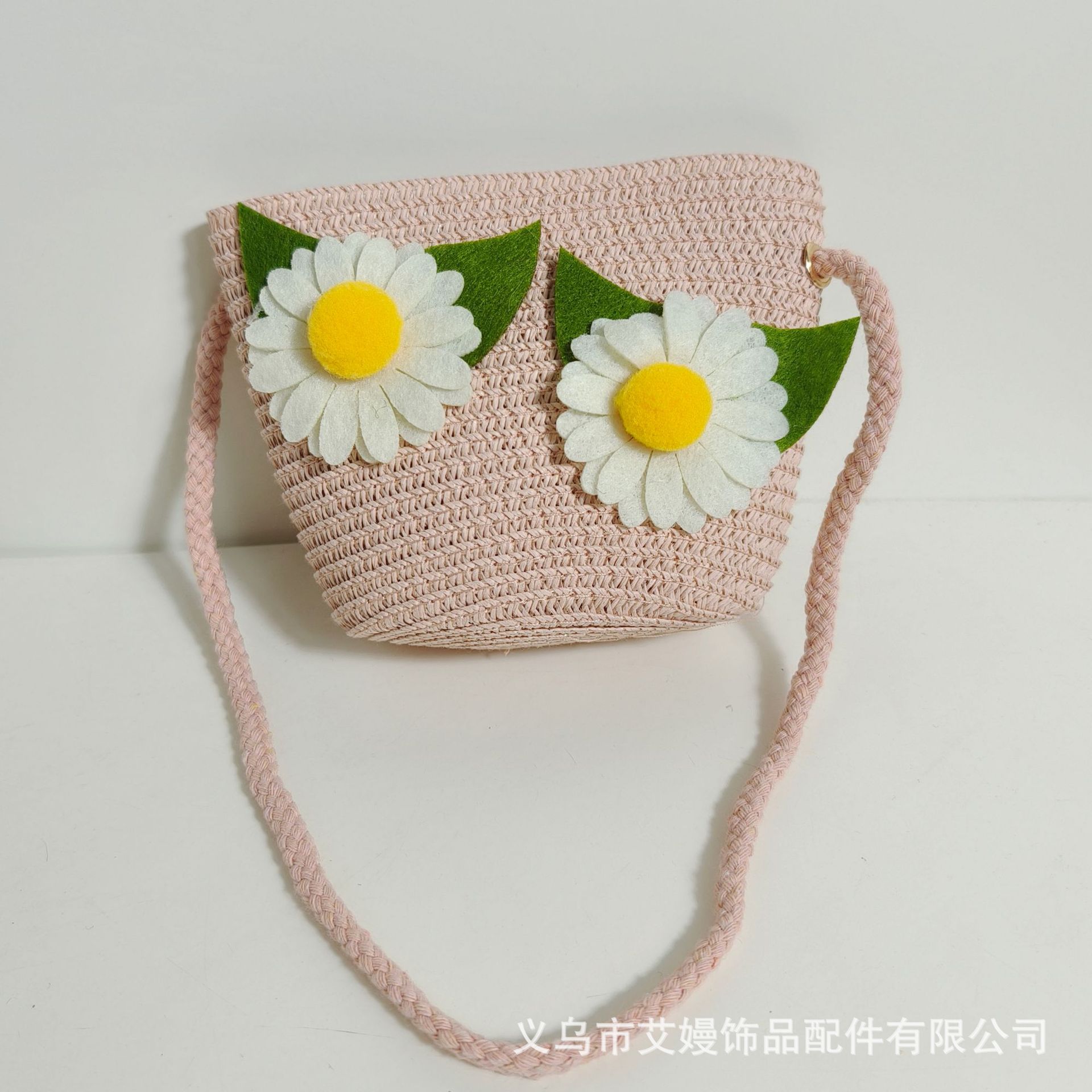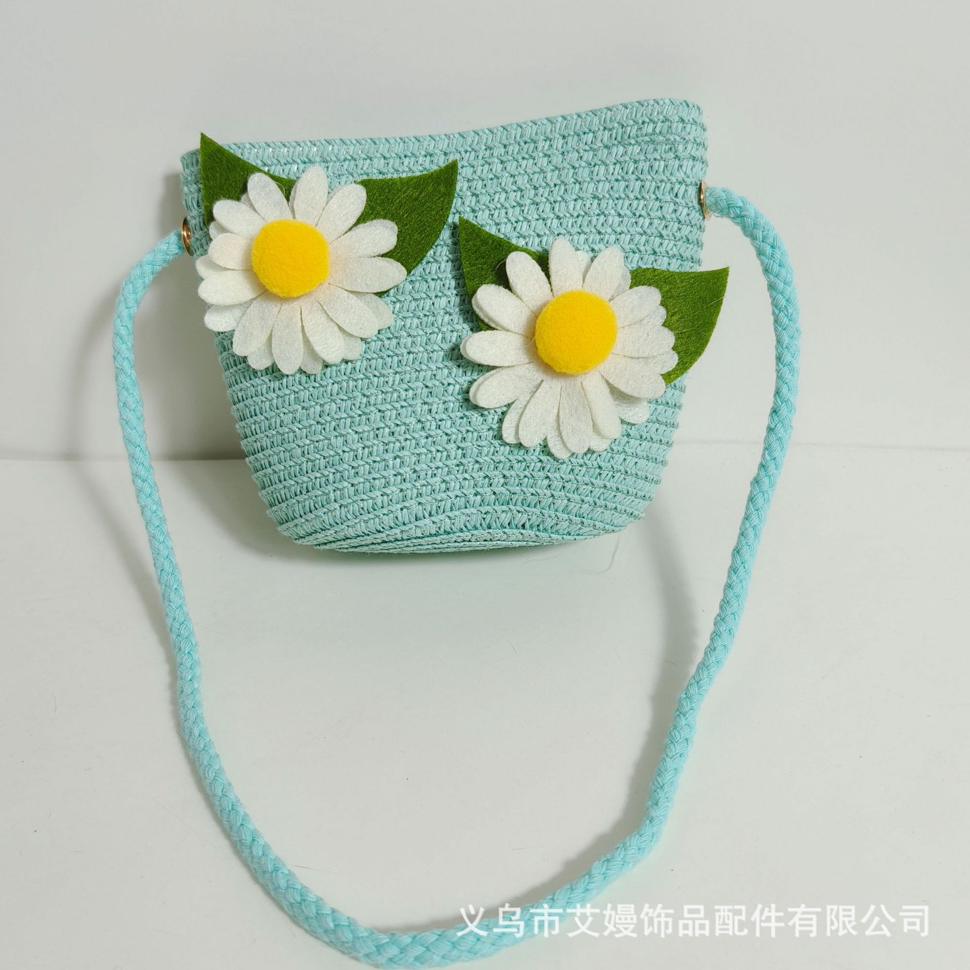 소녀 여름 새로운 어린이 수제 짠 데이지 가방 귀여운 동전 지갑 올 매치 크로스 바디 백 도매