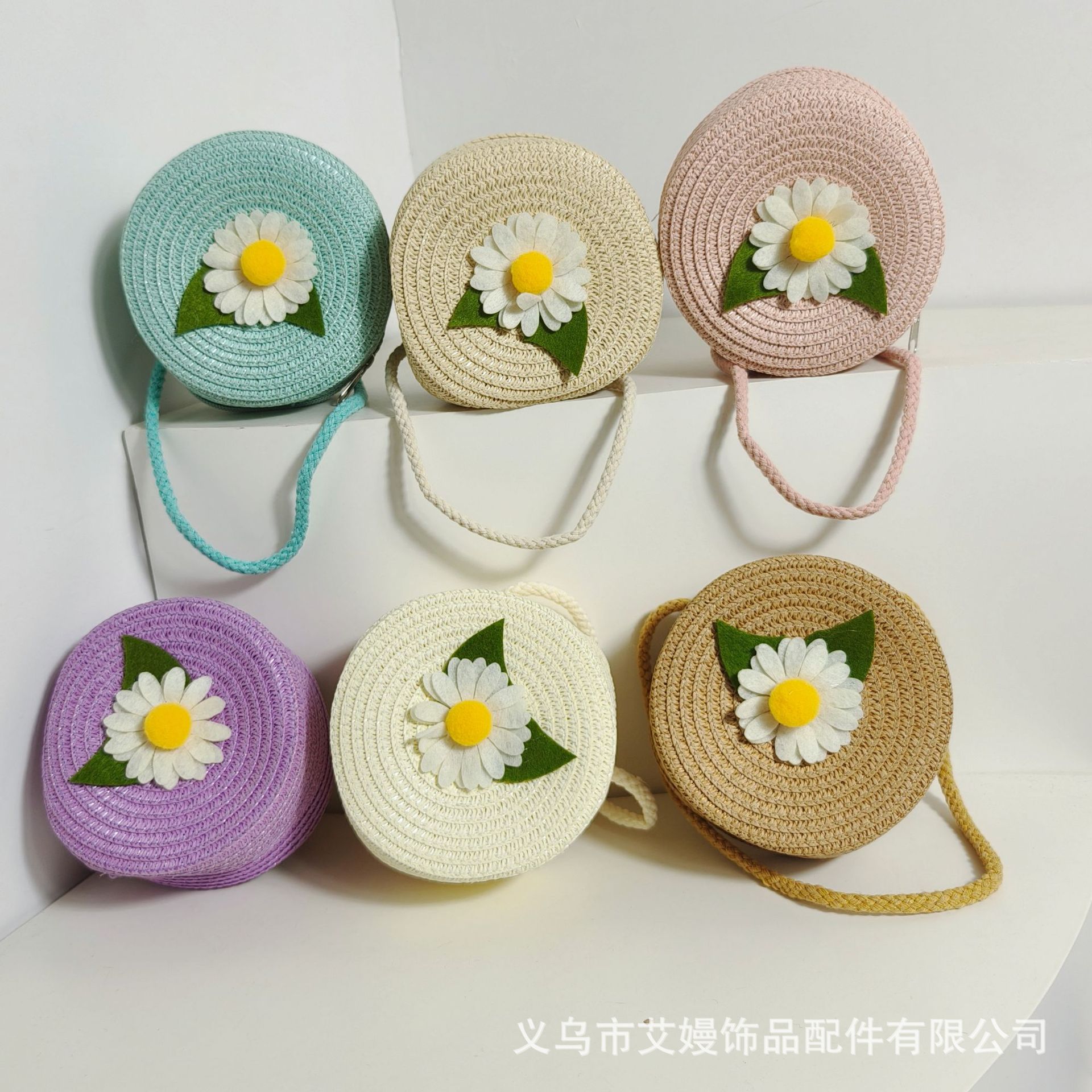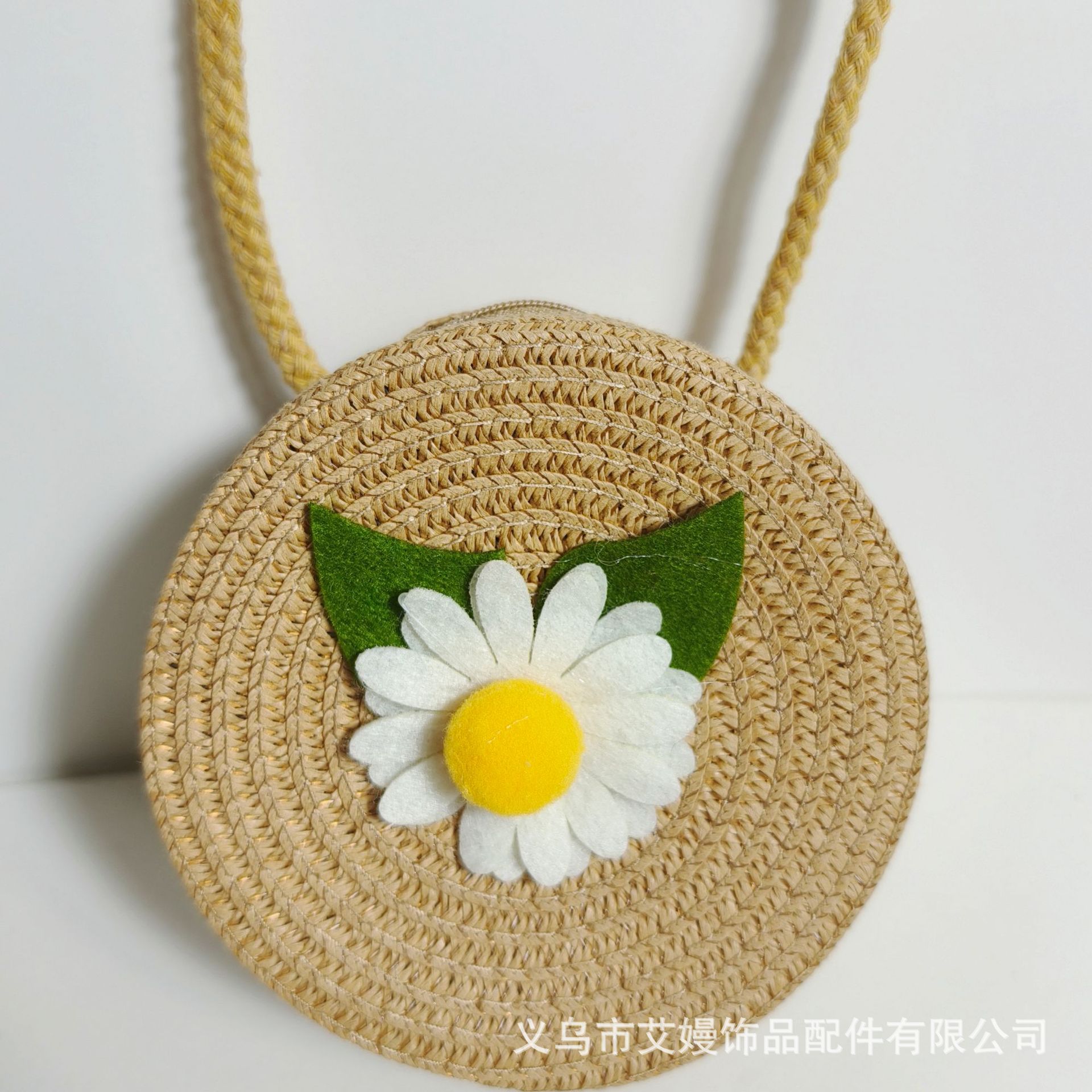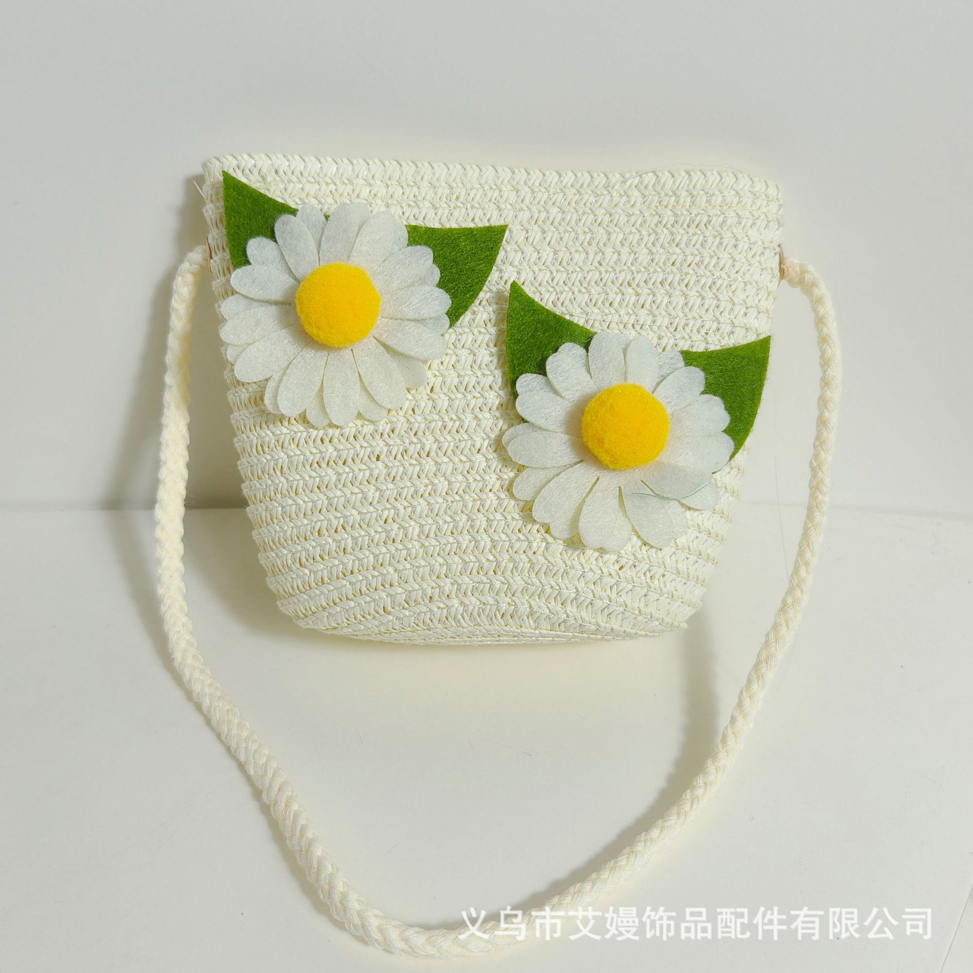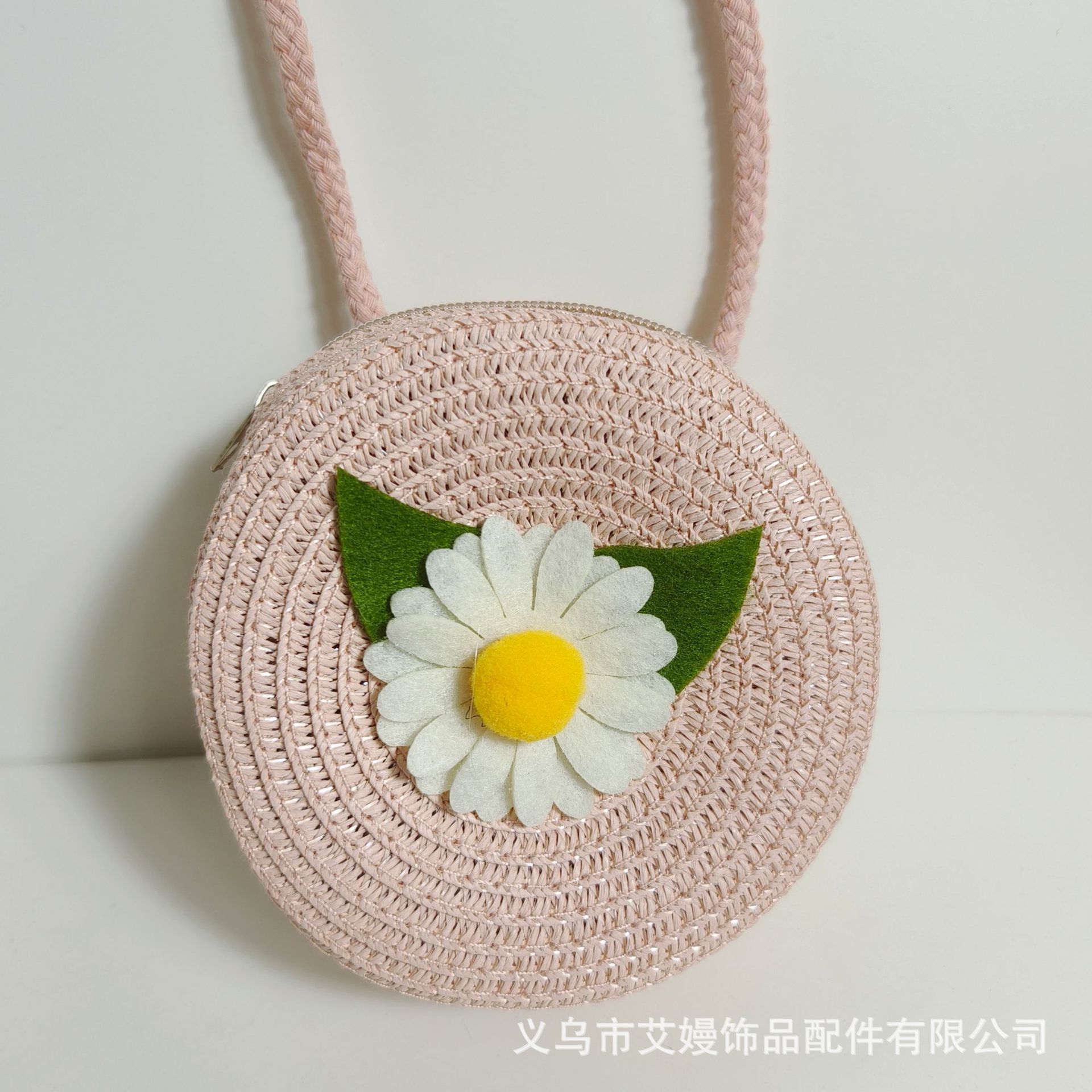 소녀 여름 새로운 어린이 수제 짠 데이지 가방 귀여운 동전 지갑 올 매치 크로스 바디 백 도매