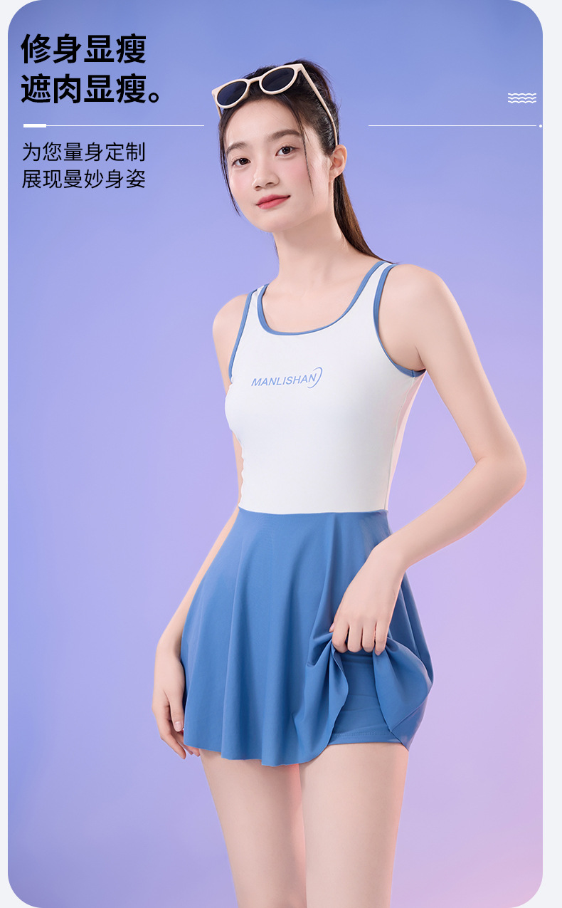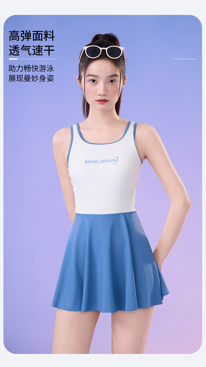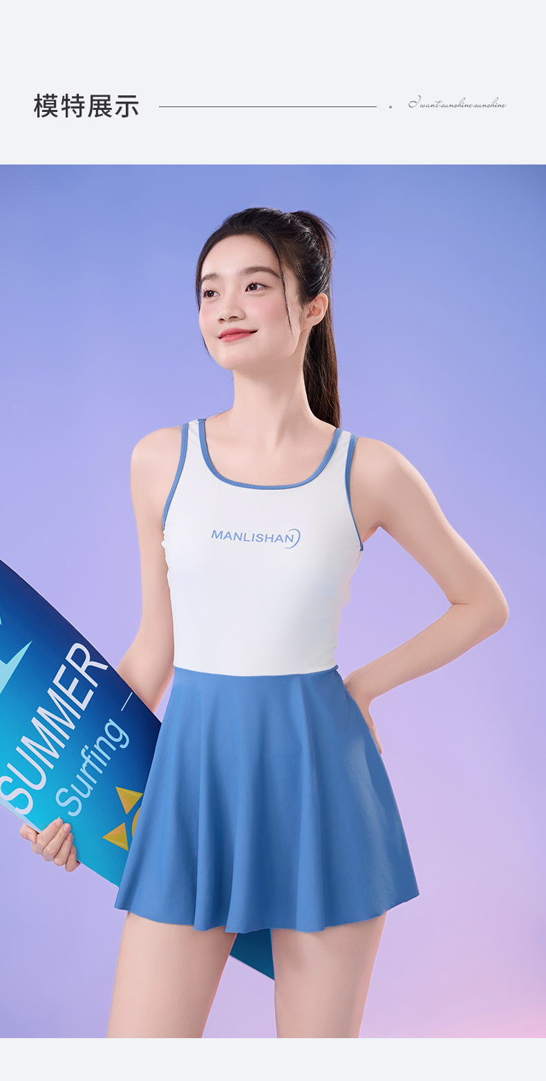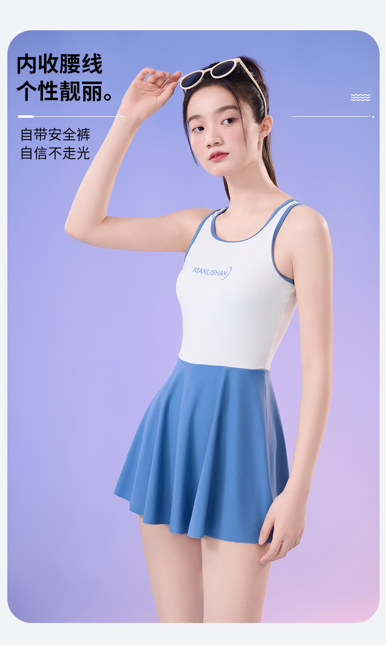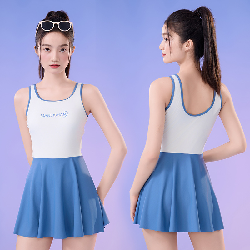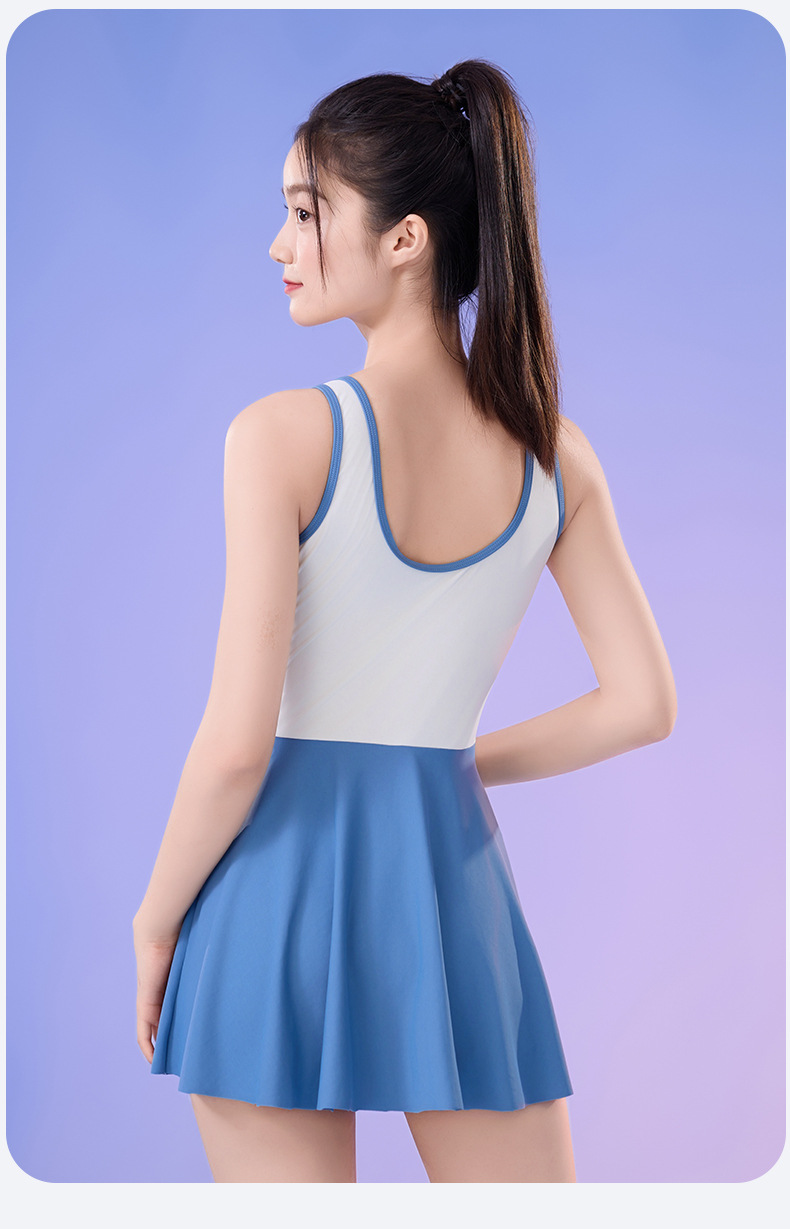 새로운 순수 섹시한 민소매 여성 수영복 학생 스포츠 세트 조끼 스커트 스타일 플러스 사이즈 수영복스토어 가기