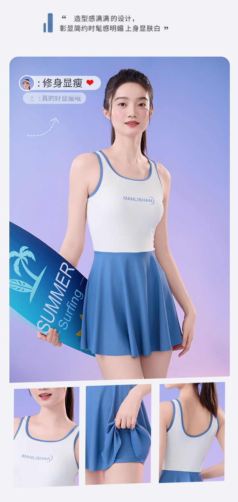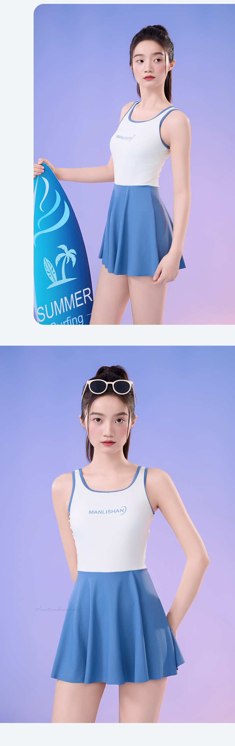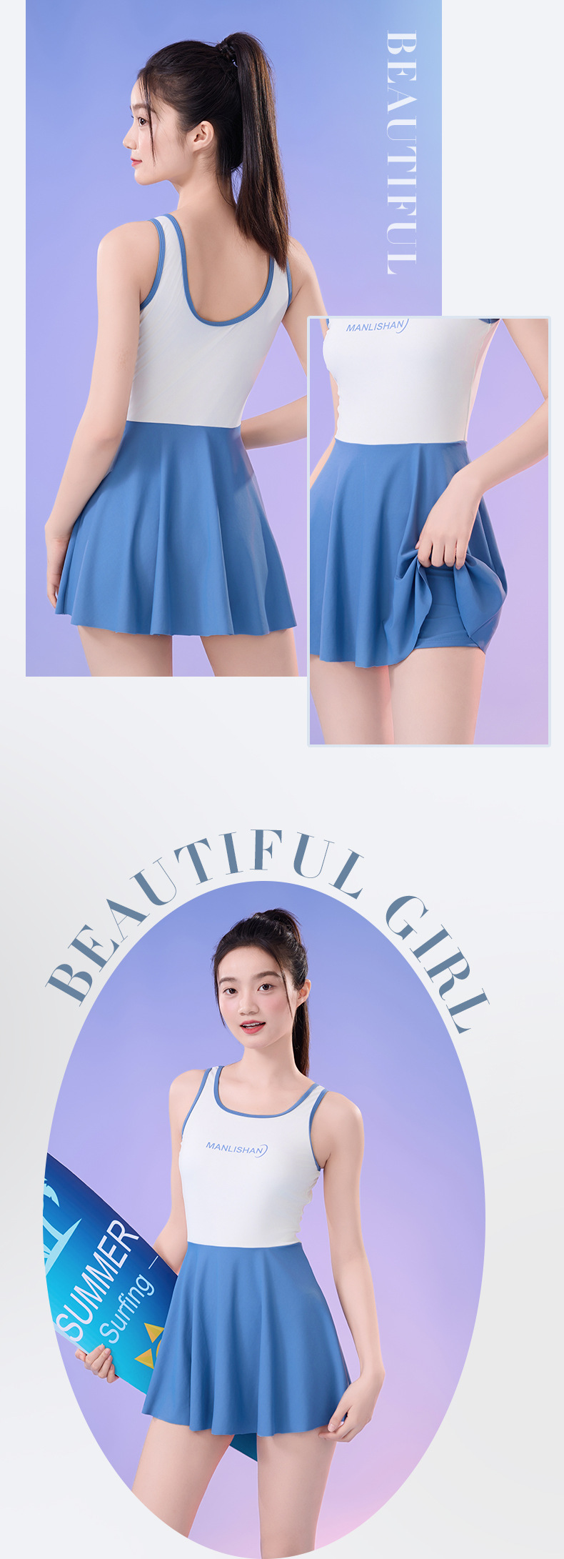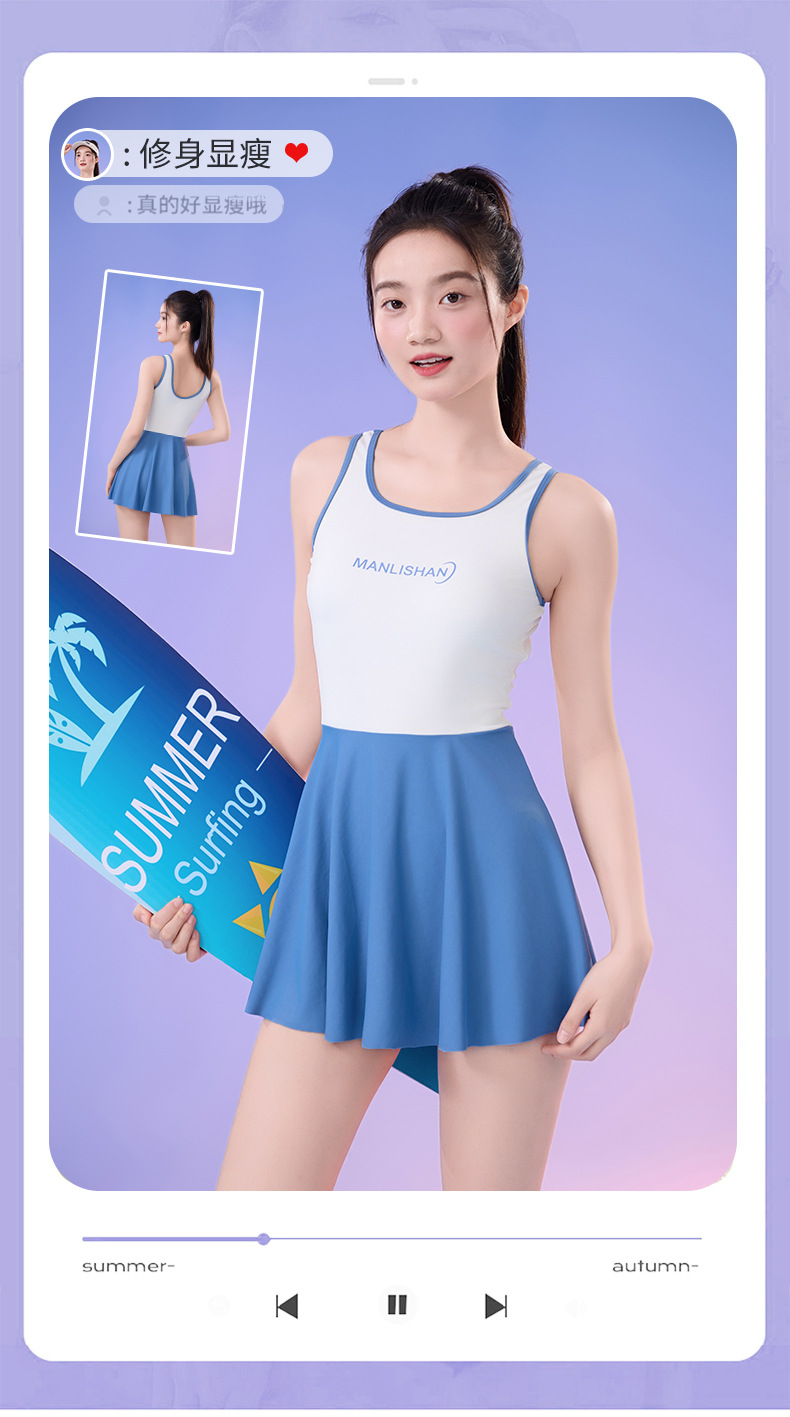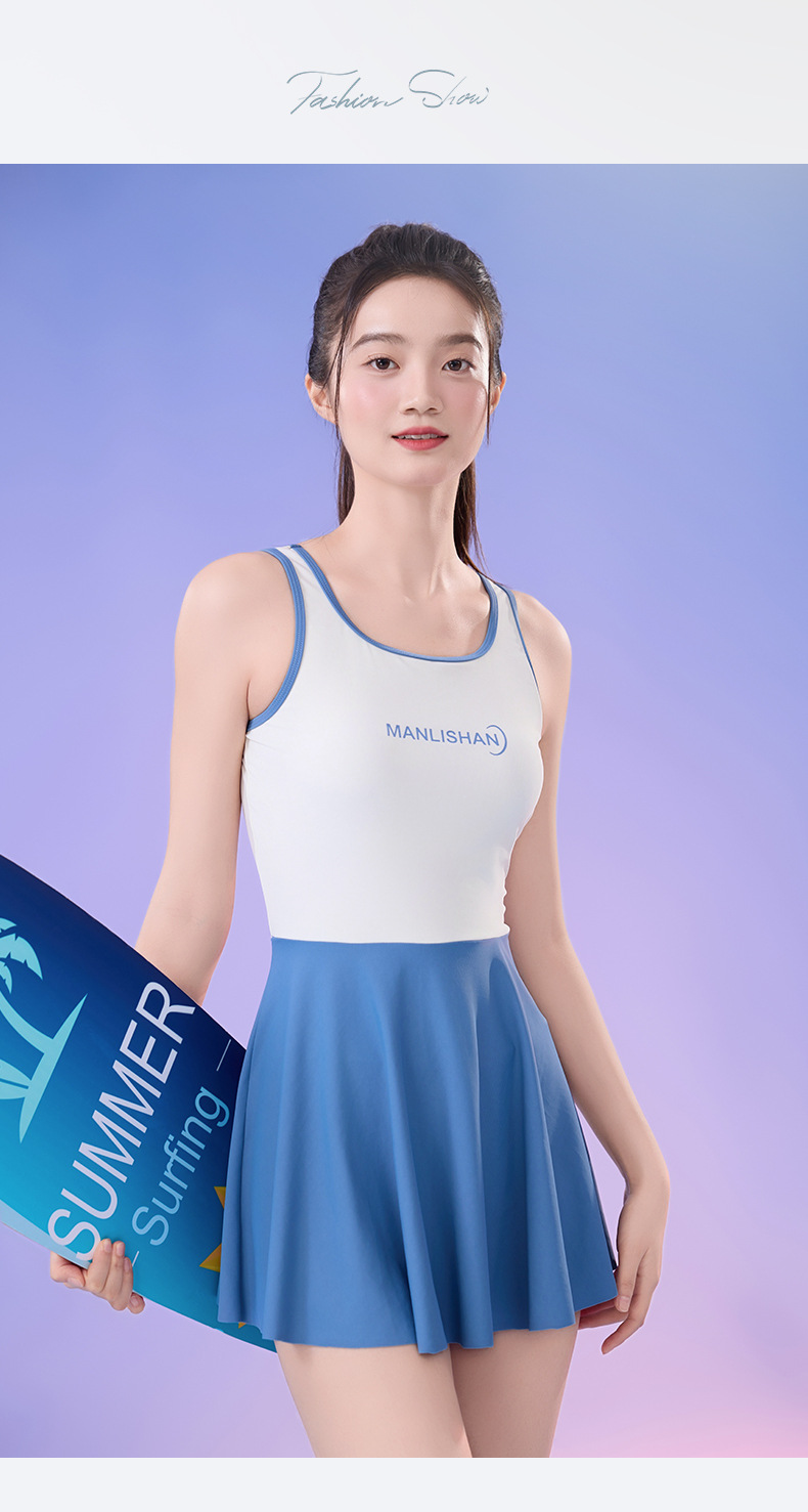 새로운 순수 섹시한 민소매 여성 수영복 학생 스포츠 세트 조끼 스커트 스타일 플러스 사이즈 수영복스토어 가기