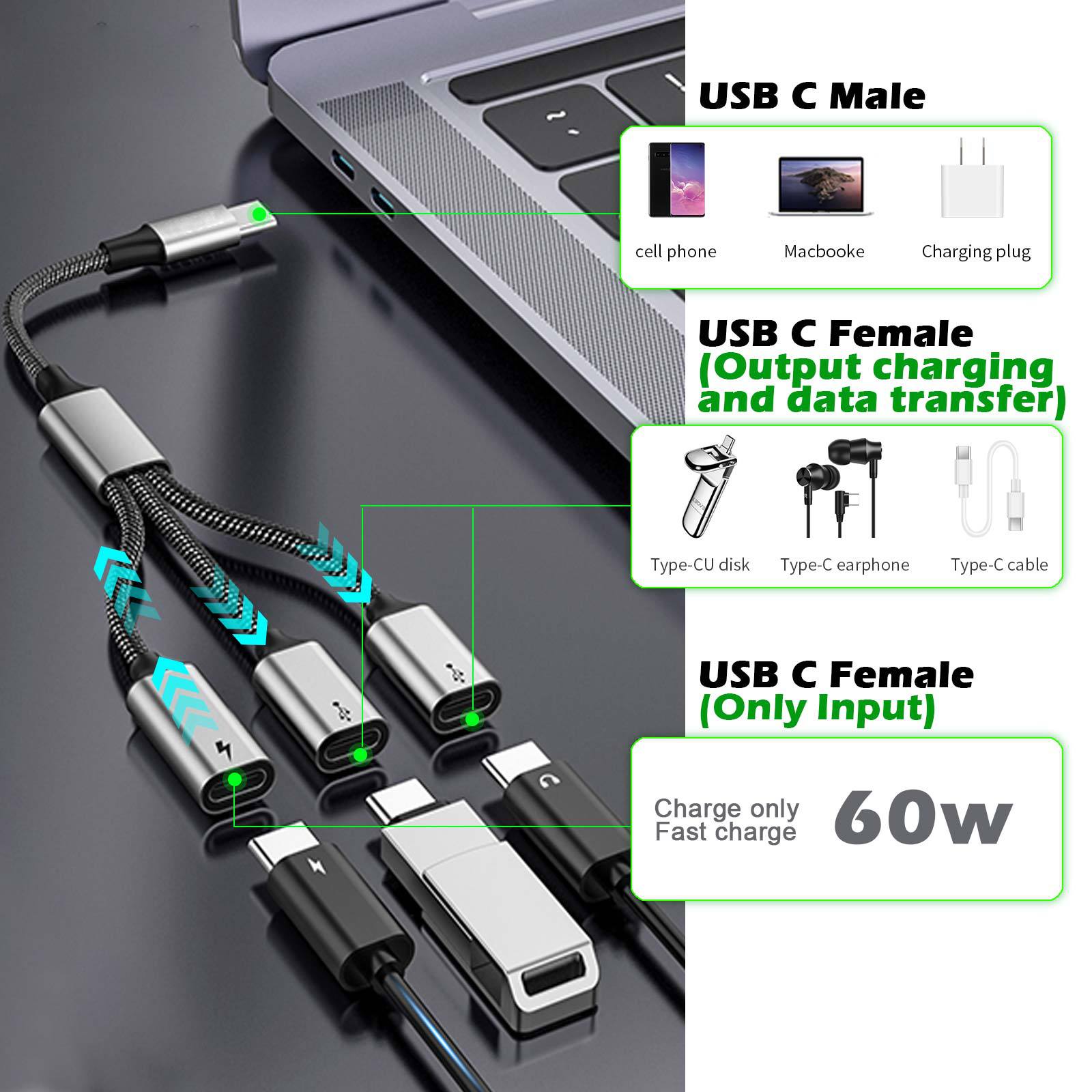 Extender 3 개의 멀티 마우스 충전 플러그 UtypeC 3UtypeC 스플리터 1 드래그 3