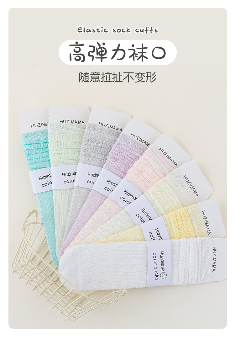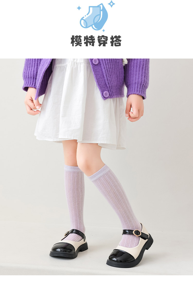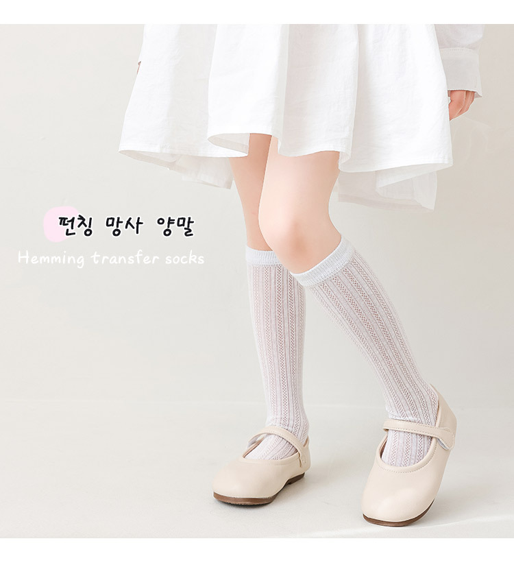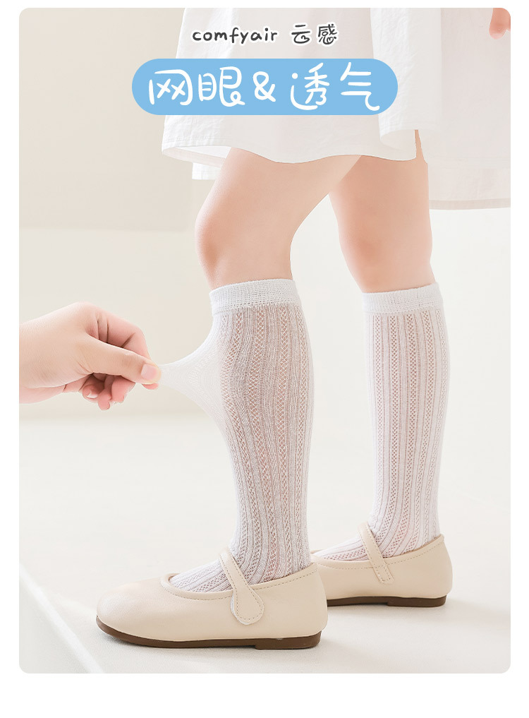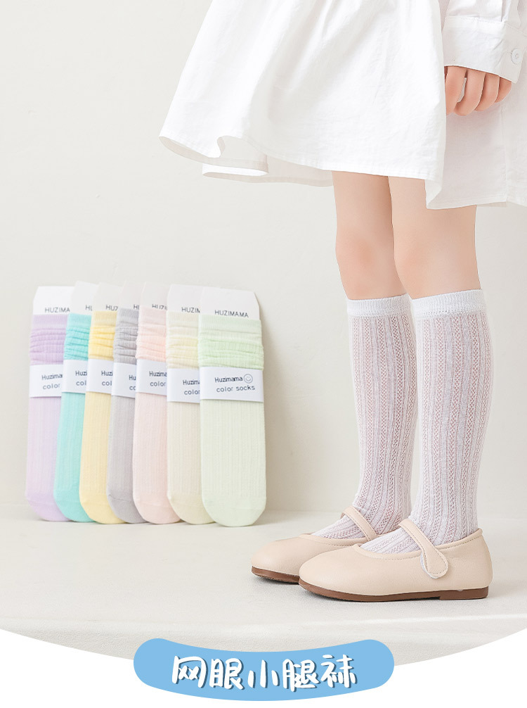어린이 여름 얇은 쌓인 양말 학생 아기 솔리드 컬러 빈 메쉬 미드 튜브 양말 소녀 긴 송아지 양말