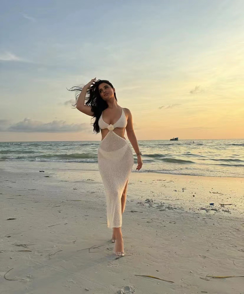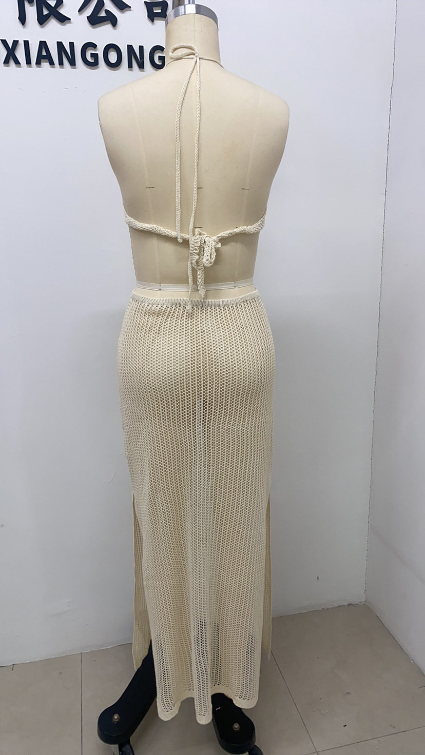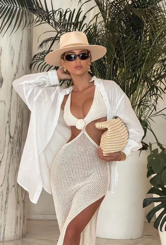 유럽과 미국의 여름 뉴 비치 원피스 여성 솔리드 컬러 섹시 니트 할로우 비치 비키니 수영복 블라우스 선 스크린 의류