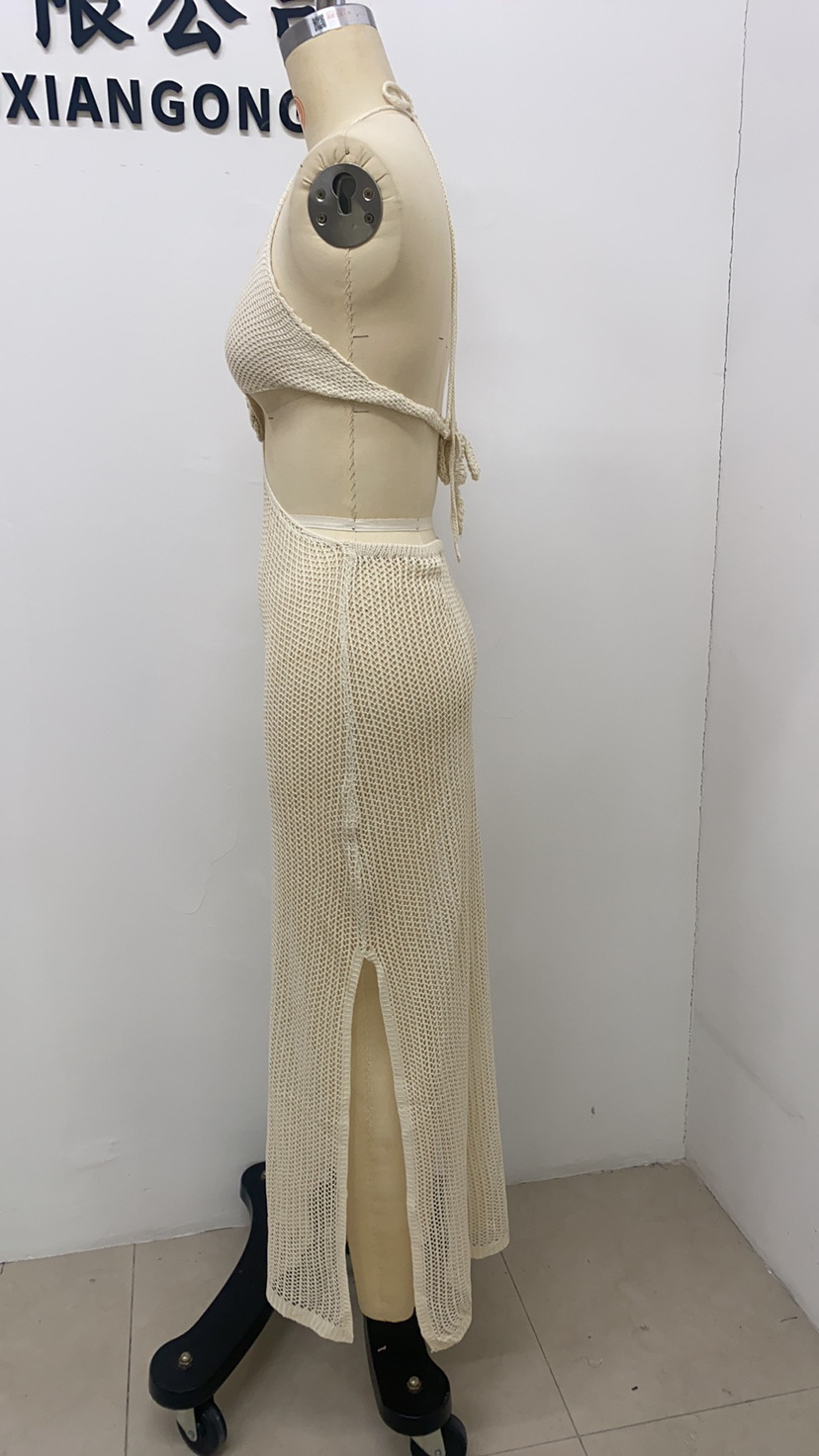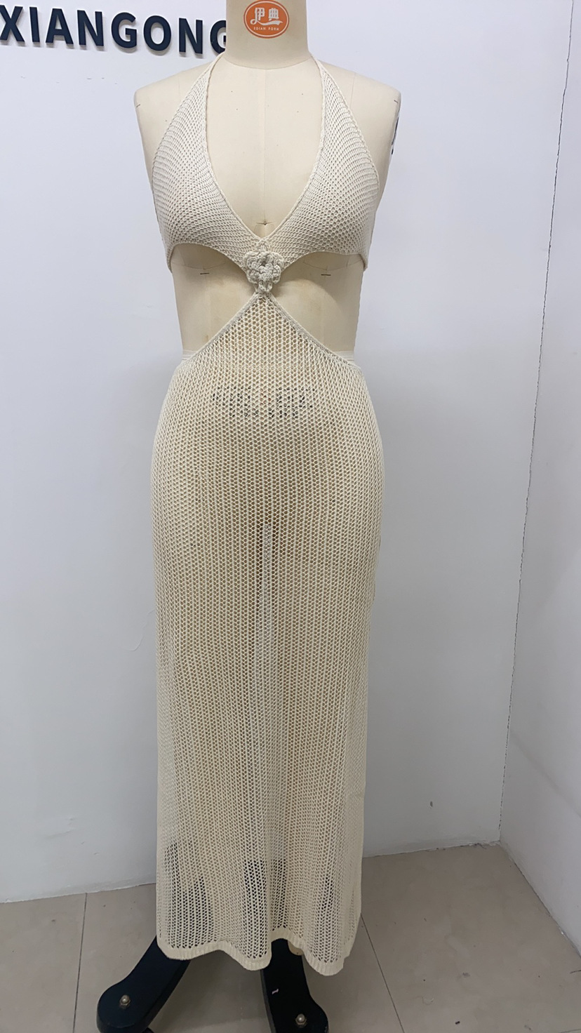 유럽과 미국의 여름 뉴 비치 원피스 여성 솔리드 컬러 섹시 니트 할로우 비치 비키니 수영복 블라우스 선 스크린 의류스토어 가기