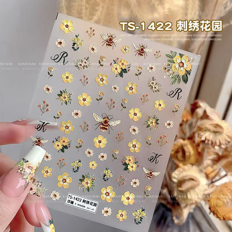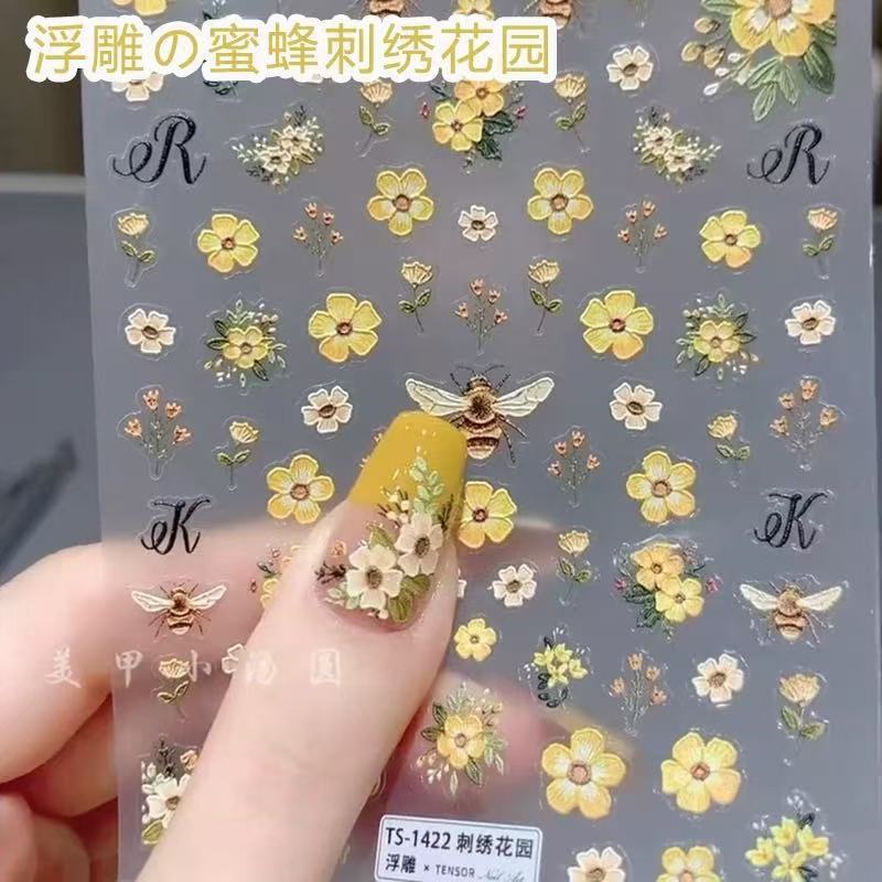 인터넷 축하 폭발성 자수 정원 양각 네일 아트 스티커 꿀벌 노란 꽃 작은 신선한 네일 장식스토어 가기