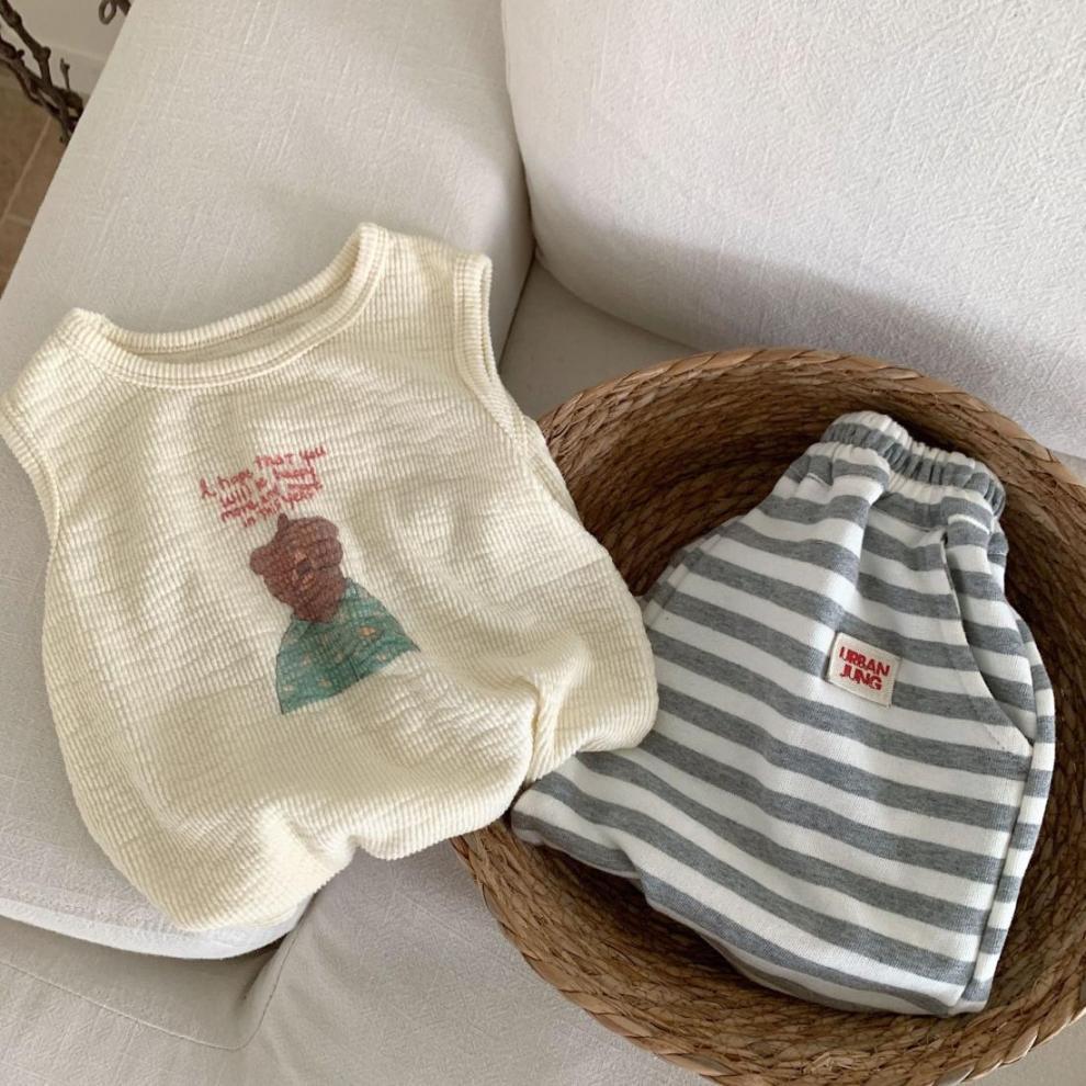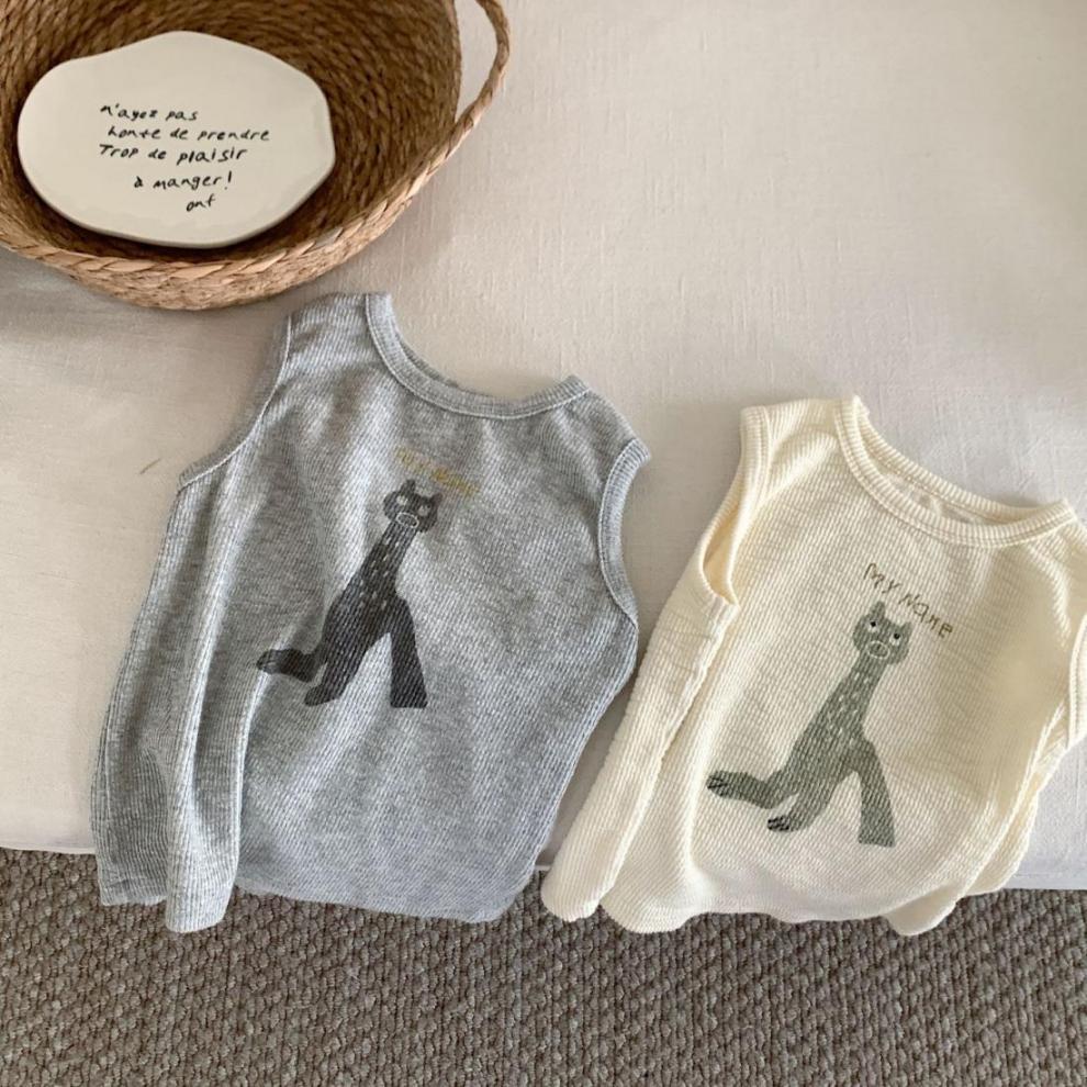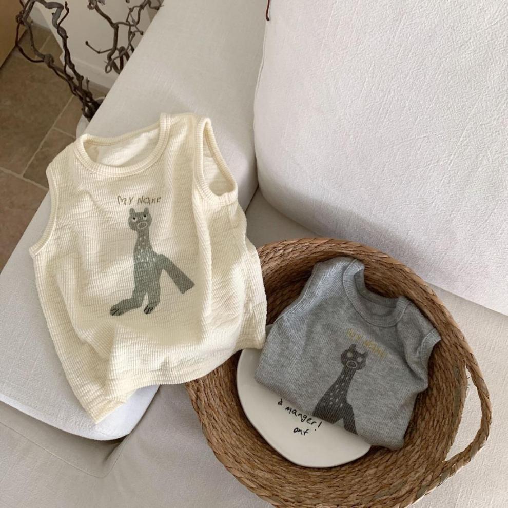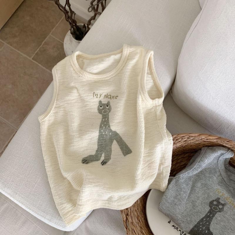 한국 여름 어린이 만화 실 인쇄 조끼 소년과 소년의 스타일리시 코튼 민소매 탑 아기 한국 스타일 조끼