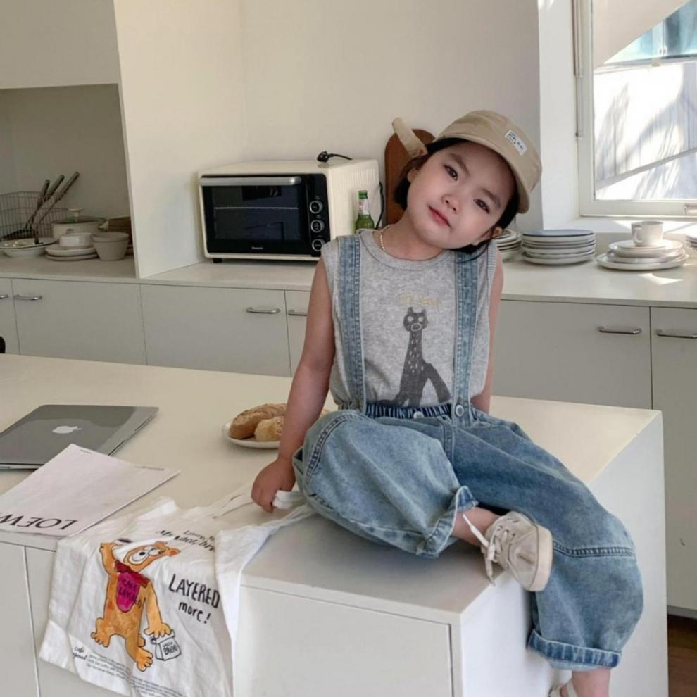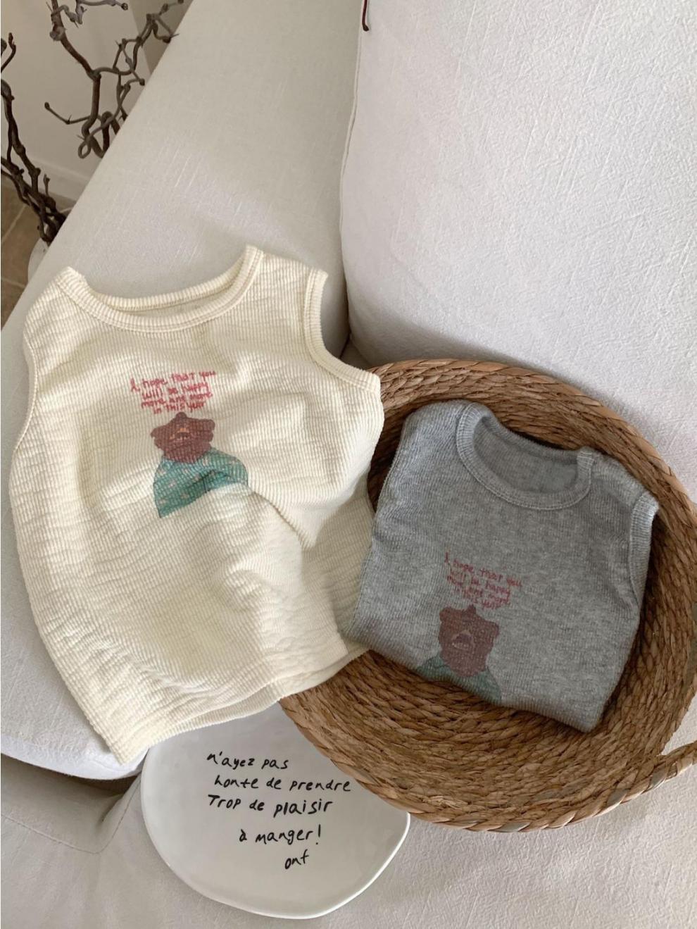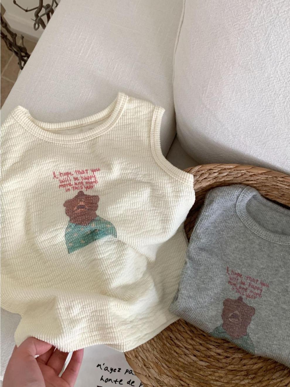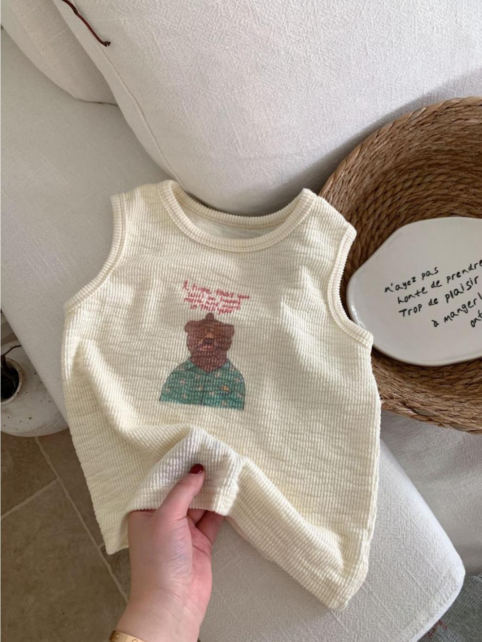 한국 여름 어린이 만화 실 인쇄 조끼 소년과 소년의 스타일리시 코튼 민소매 탑 아기 한국 스타일 조끼