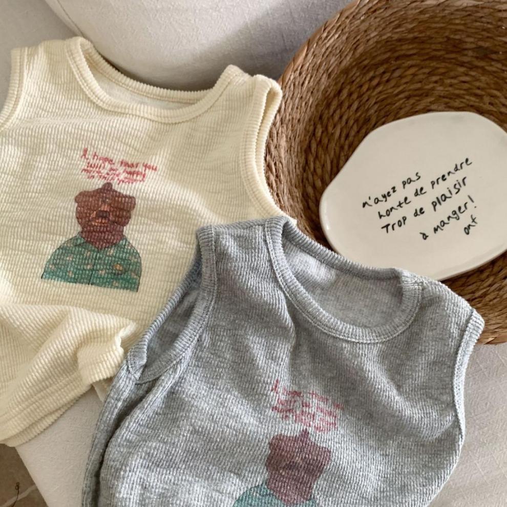한국 여름 어린이 만화 실 인쇄 조끼 소년과 소년의 스타일리시 코튼 민소매 탑 아기 한국 스타일 조끼스토어 가기