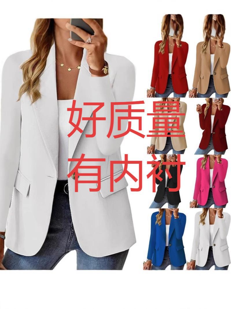 2025 아마존 WISH 폭발 가을 긴 소매 단색 카디건 작은 세트 재킷 여성스토어 가기