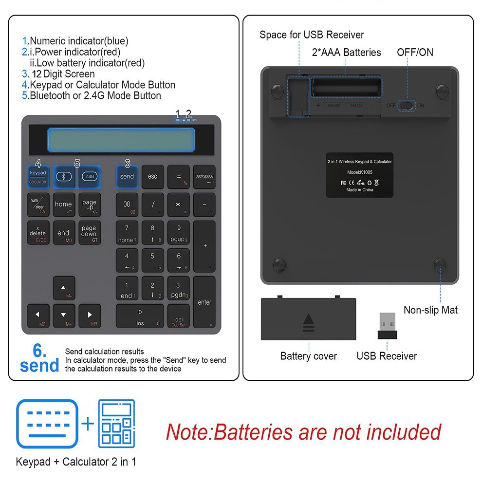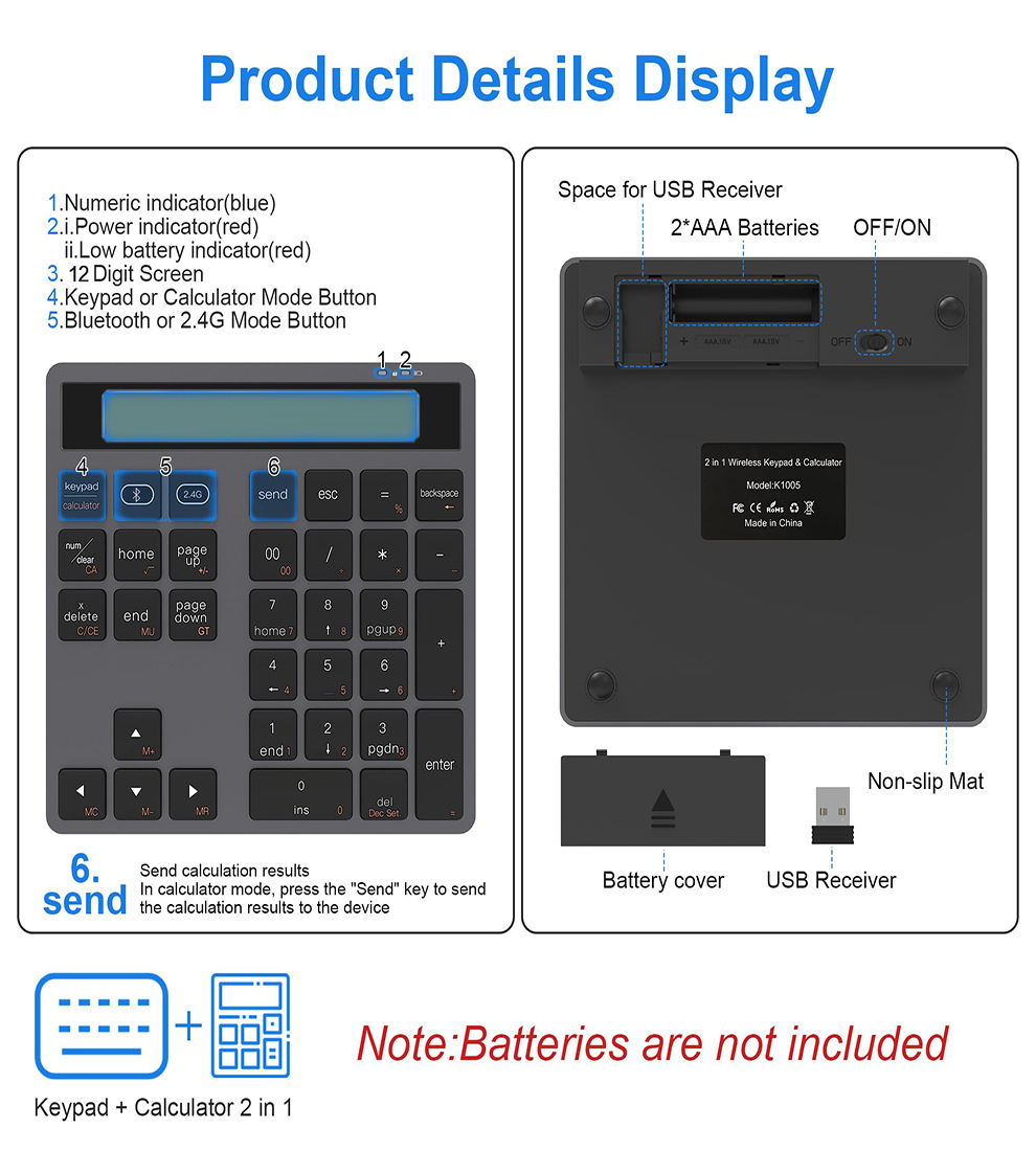 계산기 디지털 키보드 2 대 1 무선 블루투스 듀얼 모드 디지털 키보드 동반자 도매