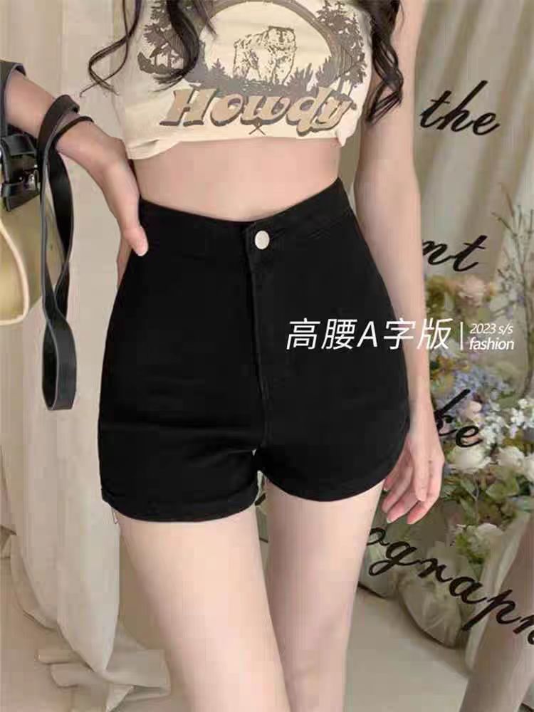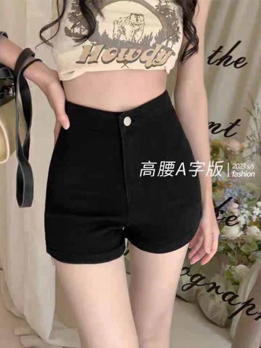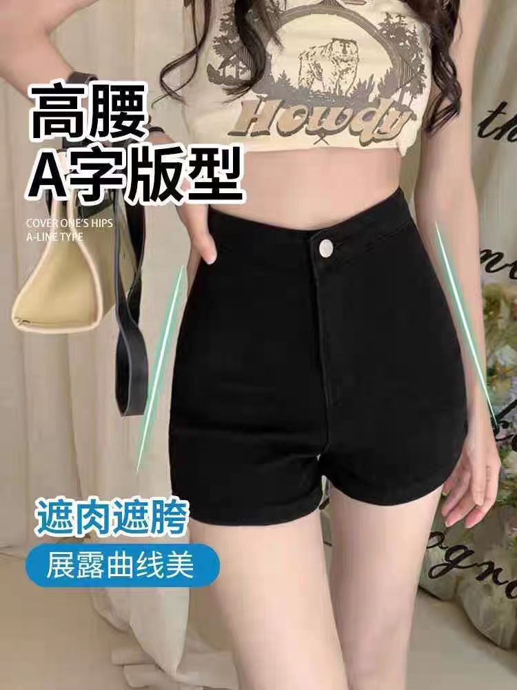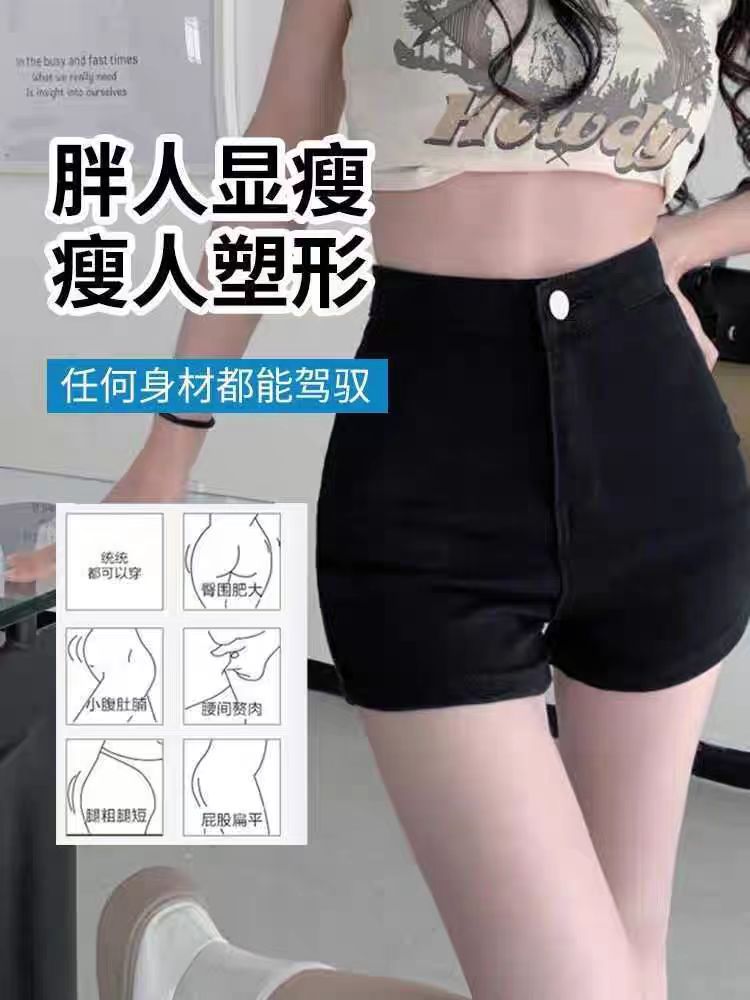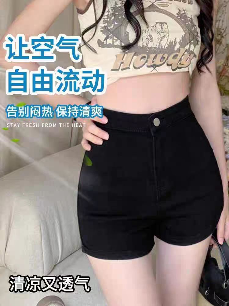 검은 데님 반바지 소녀 2025 여름 새로운 높은 허리 슬리밍 스파이스 소녀 탄성 단단한 엉덩이 짧은 뜨거운 바지스토어 가기