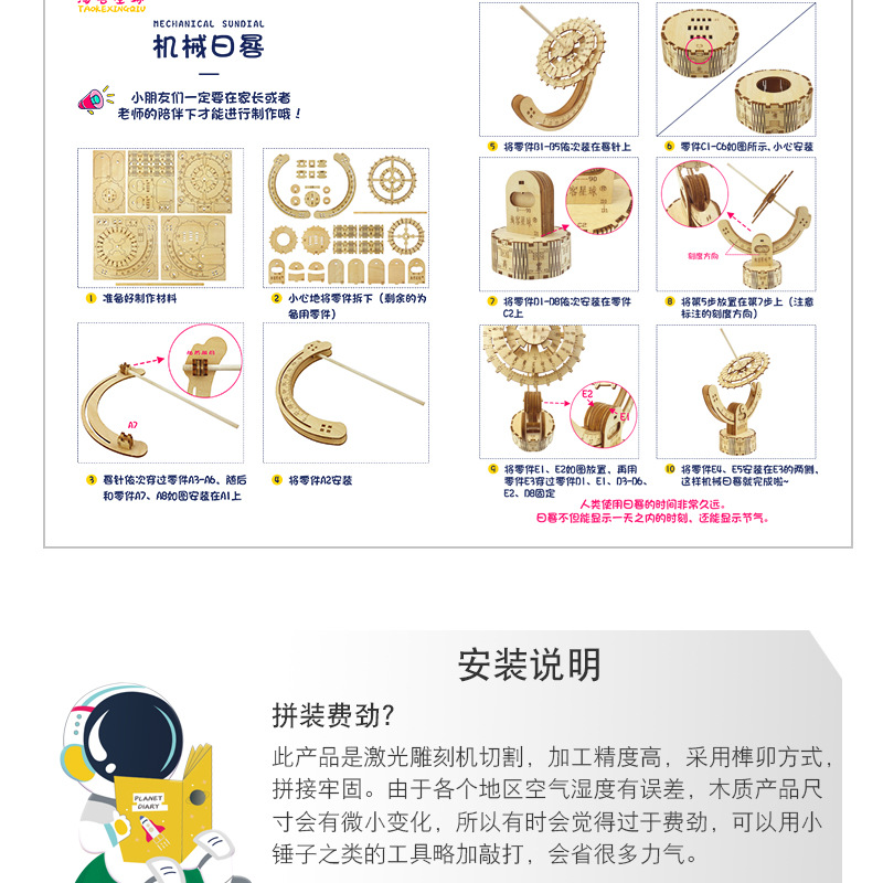 과학 실험 세트 나무 조립 모델 기계식 해시계 태양 시계 학생 과학 기술 소규모 생산 교육 장난감스토어 가기