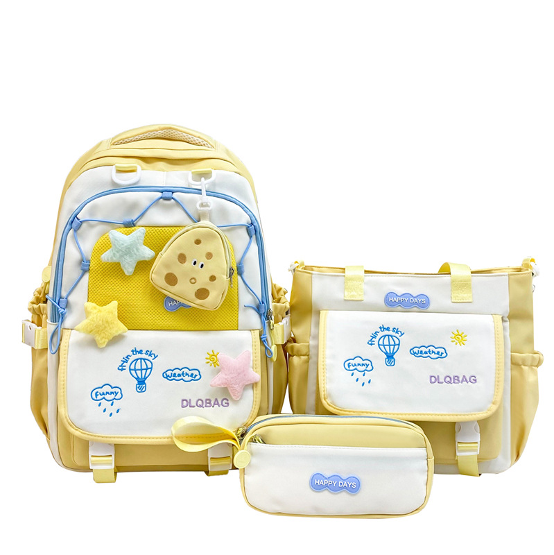 • 연한 노란색 백팩 + 별 모양 액세서리