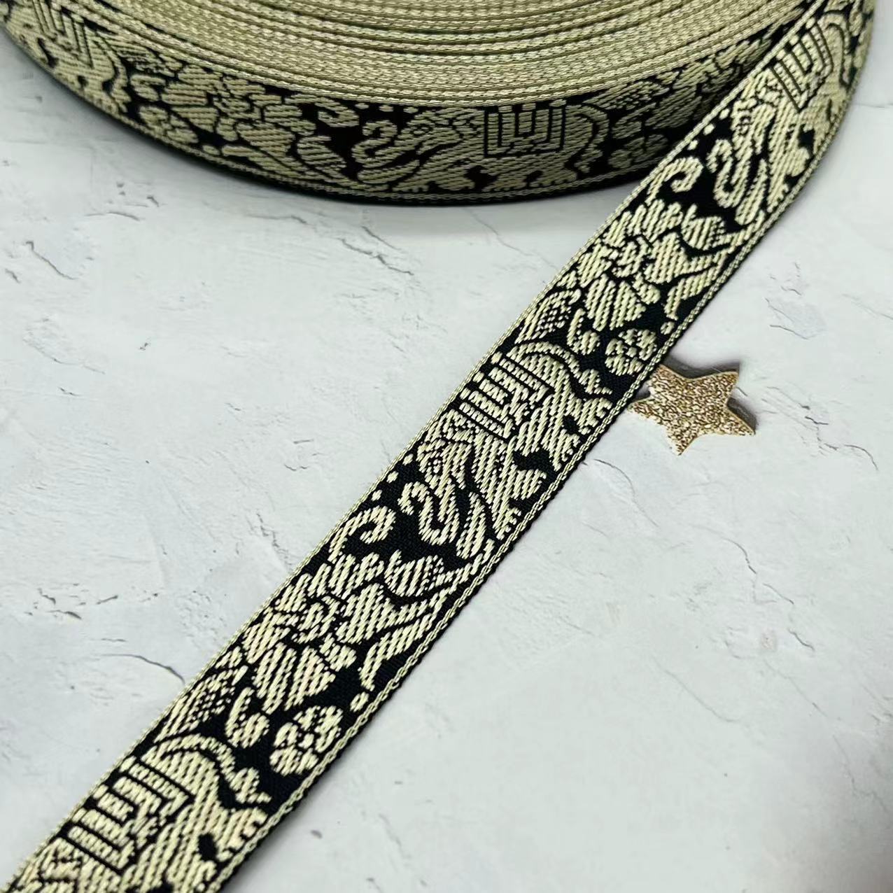 • 에스닉 스타일 코끼리-블랙*2cm*자카드 리본*리본
