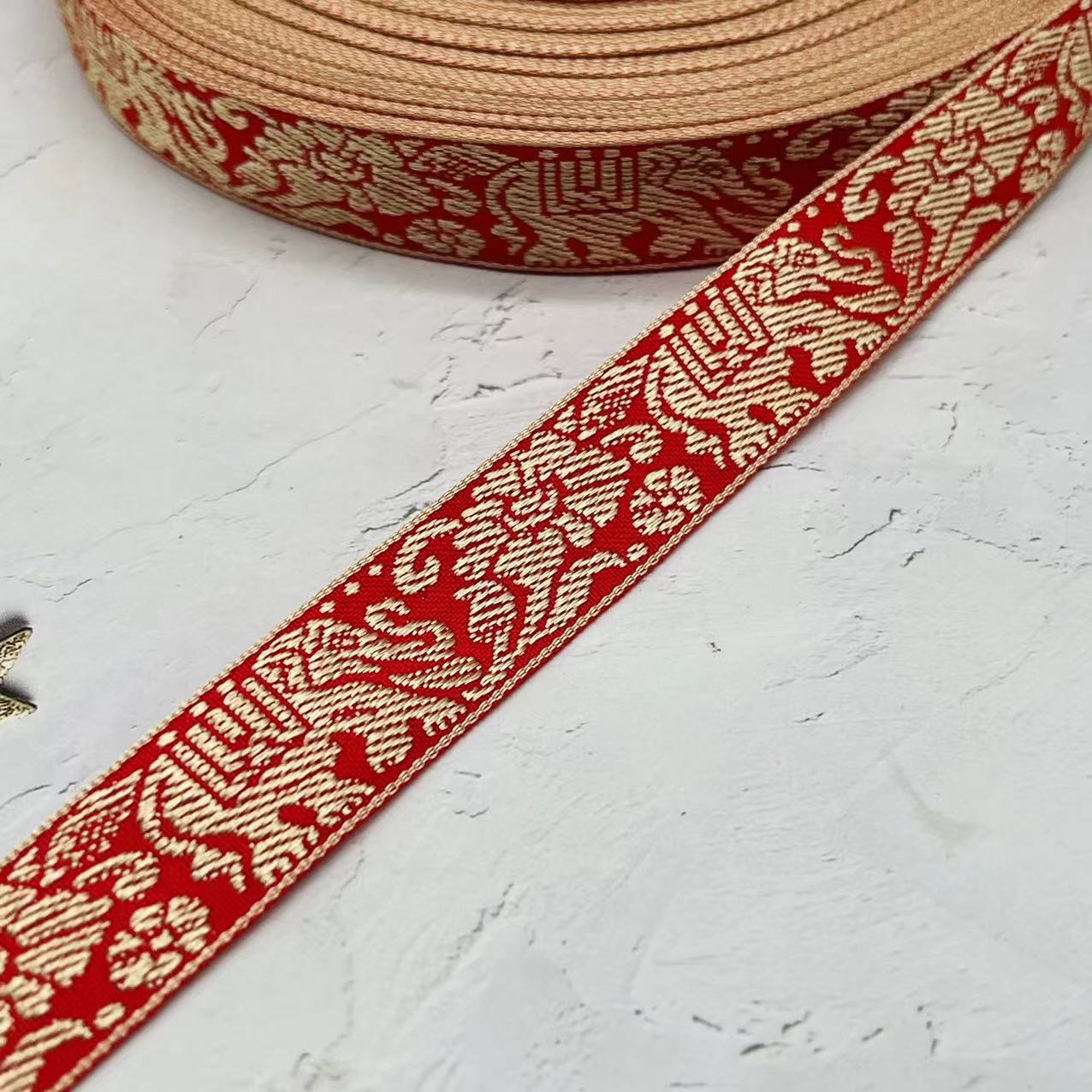 • 에스닉 스타일 코끼리-레드*2cm*자카드 리본*리본