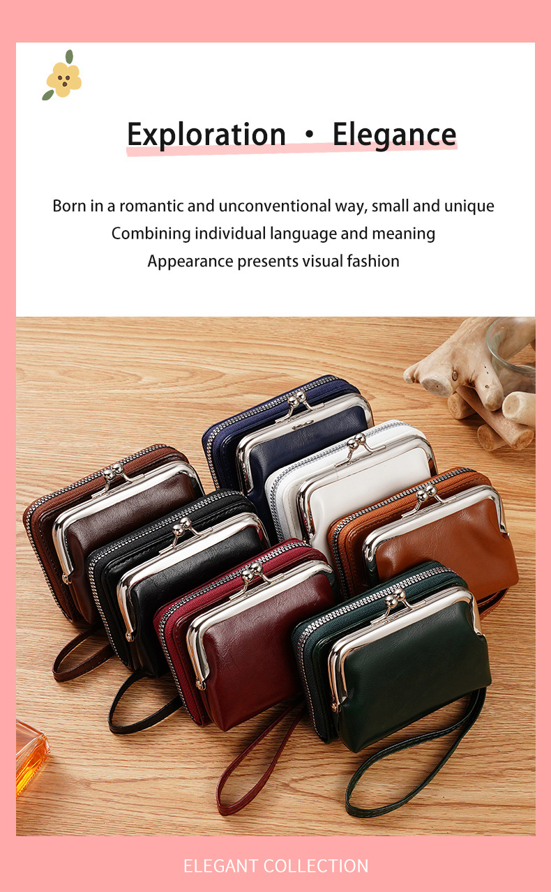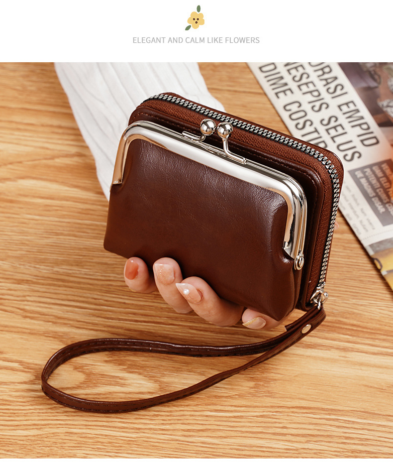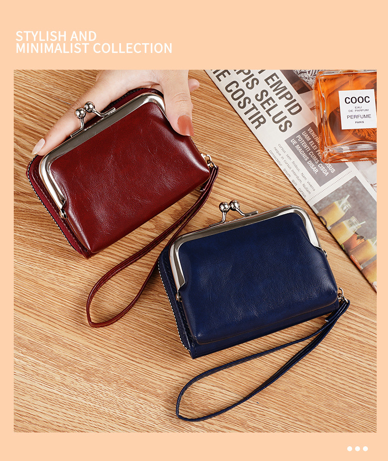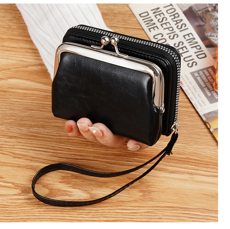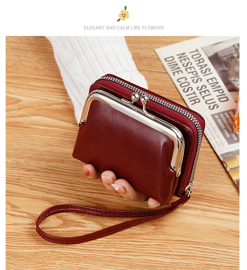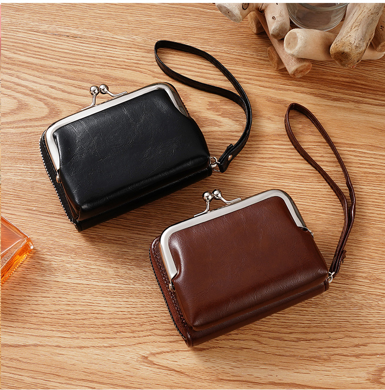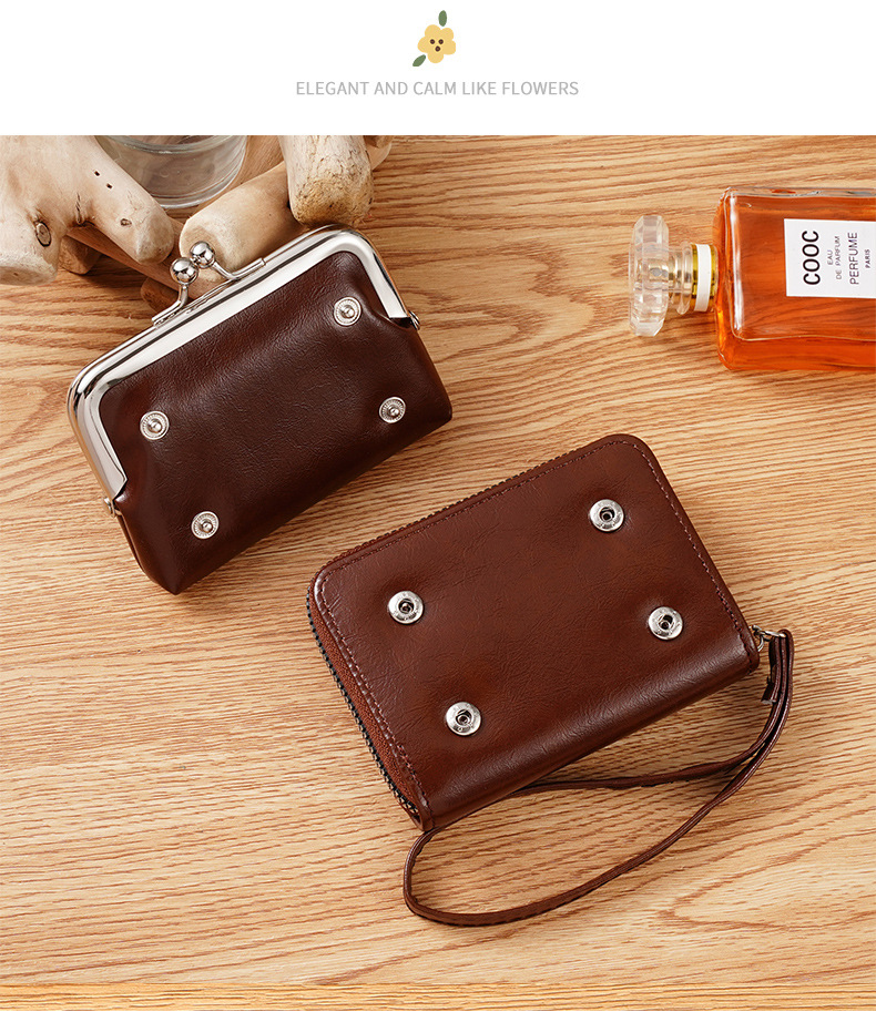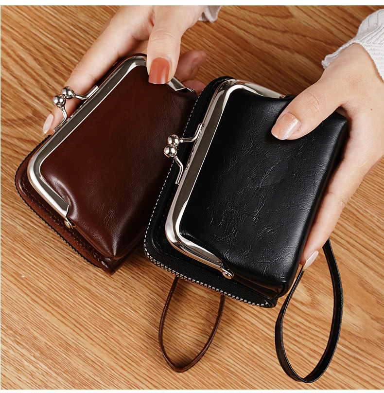 现货供应工厂跨境货源女士搭扣零钱包4寸拉链夹子包手拿包复古包