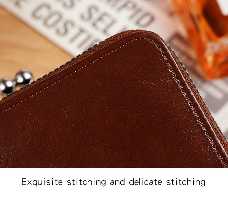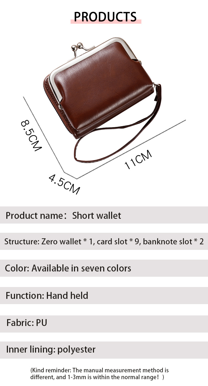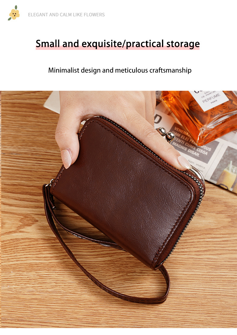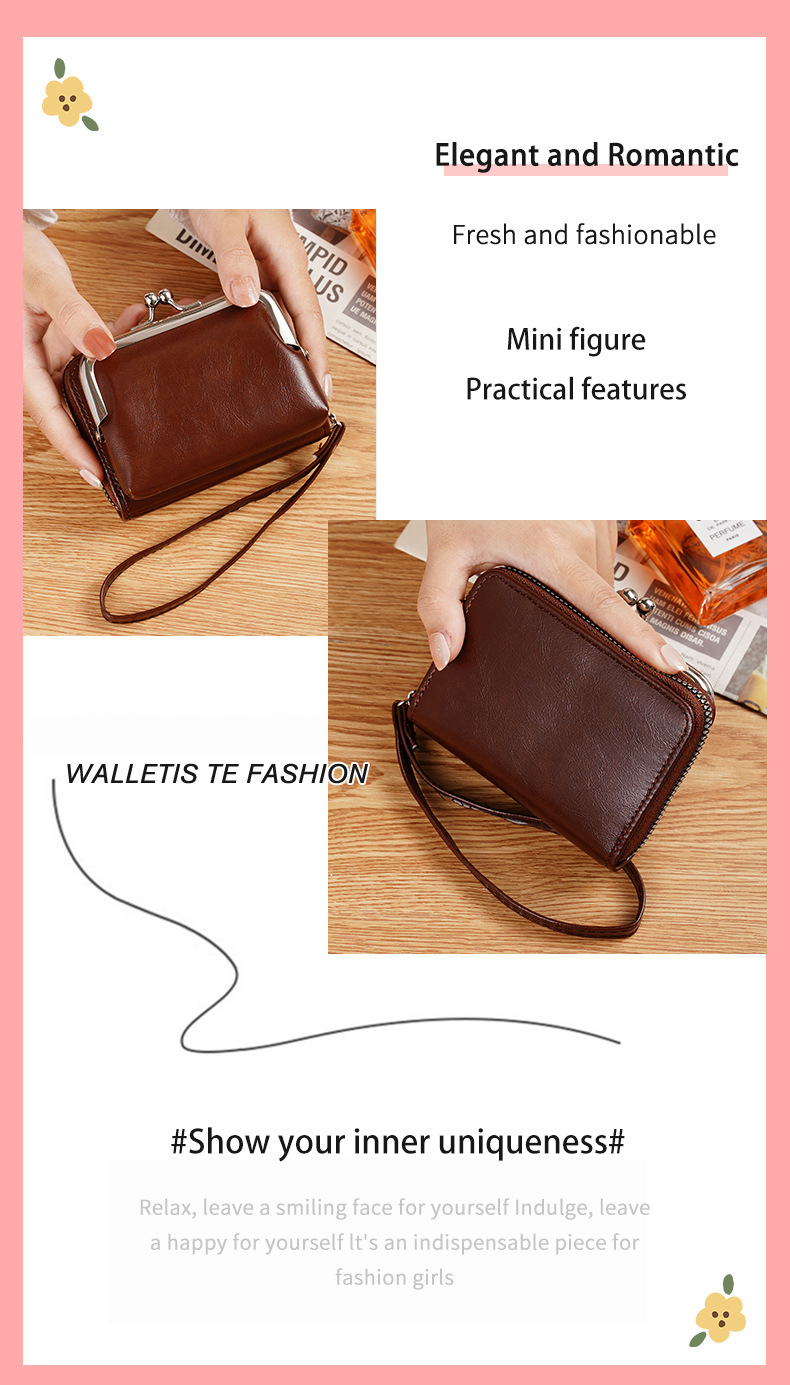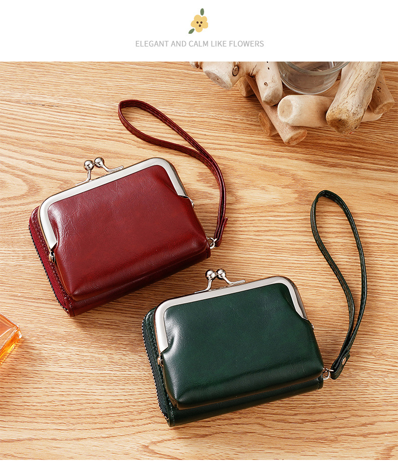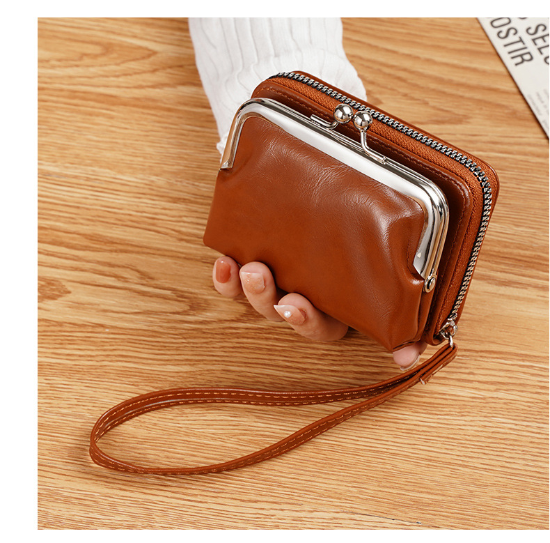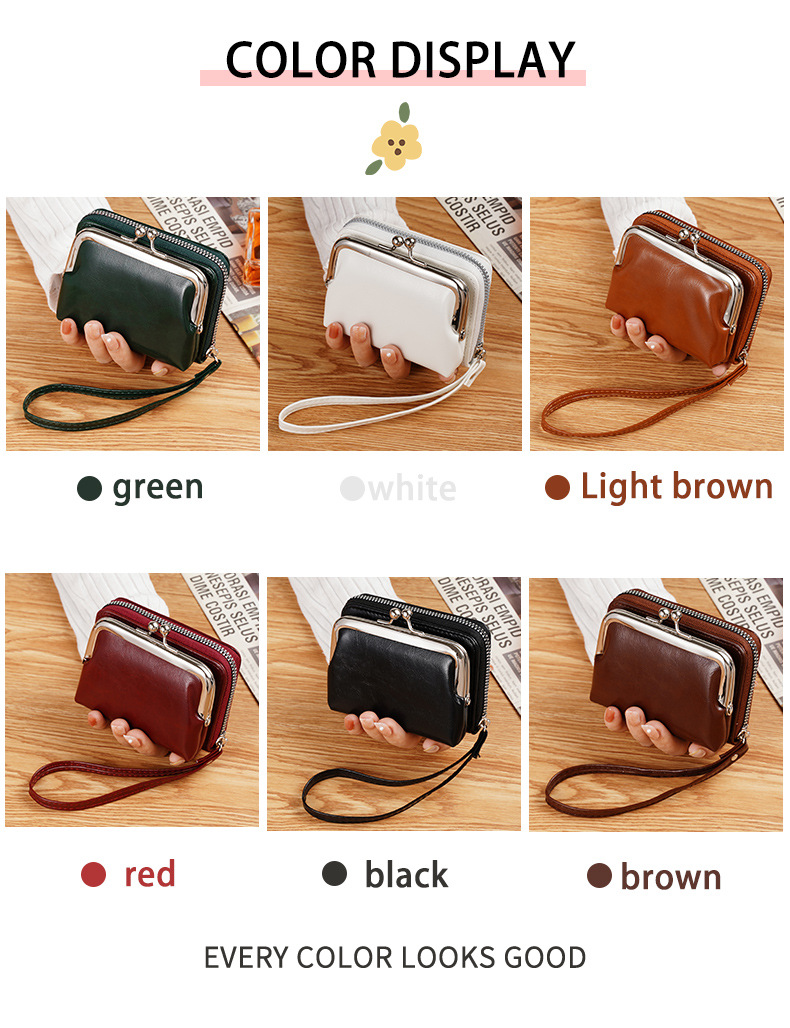 现货供应工厂跨境货源女士搭扣零钱包4寸拉链夹子包手拿包复古包