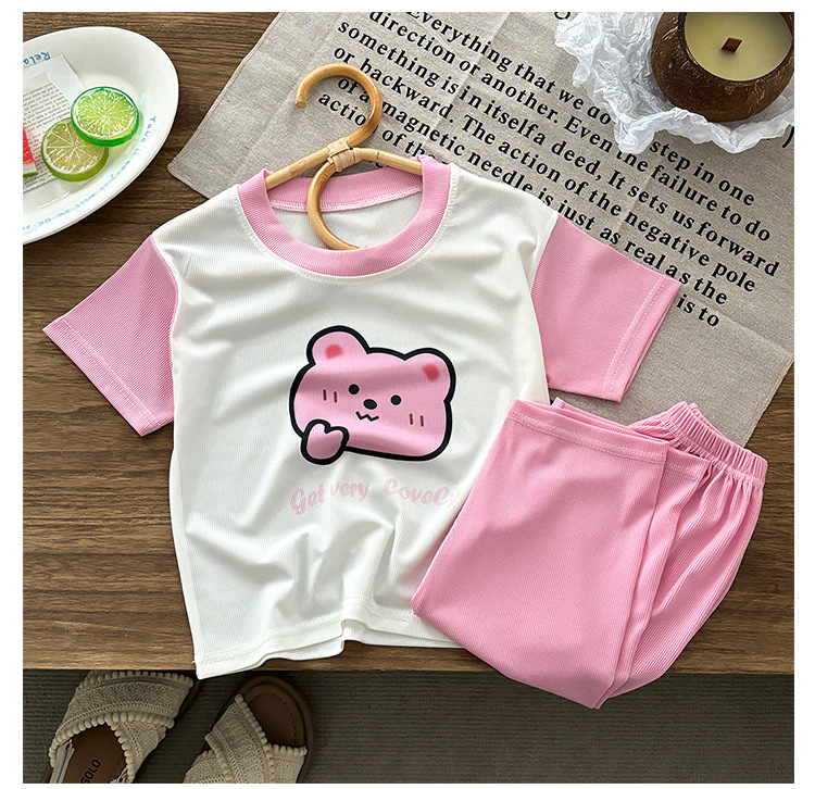 어린 이용 아이스 실크 반팔 얇은 느슨한 편안한 자른 바지 소년 소녀를위한 세트 아기 홈 옷 파자마 스타일