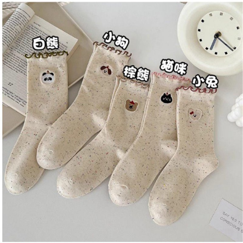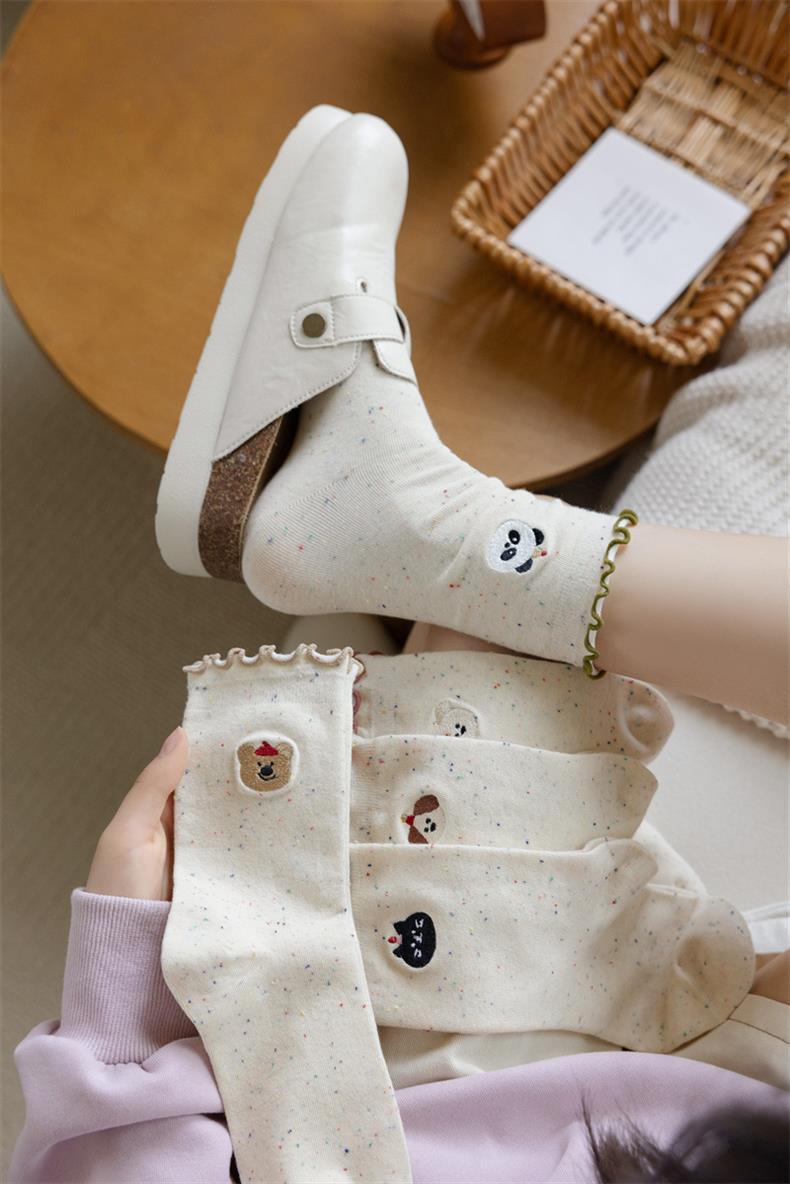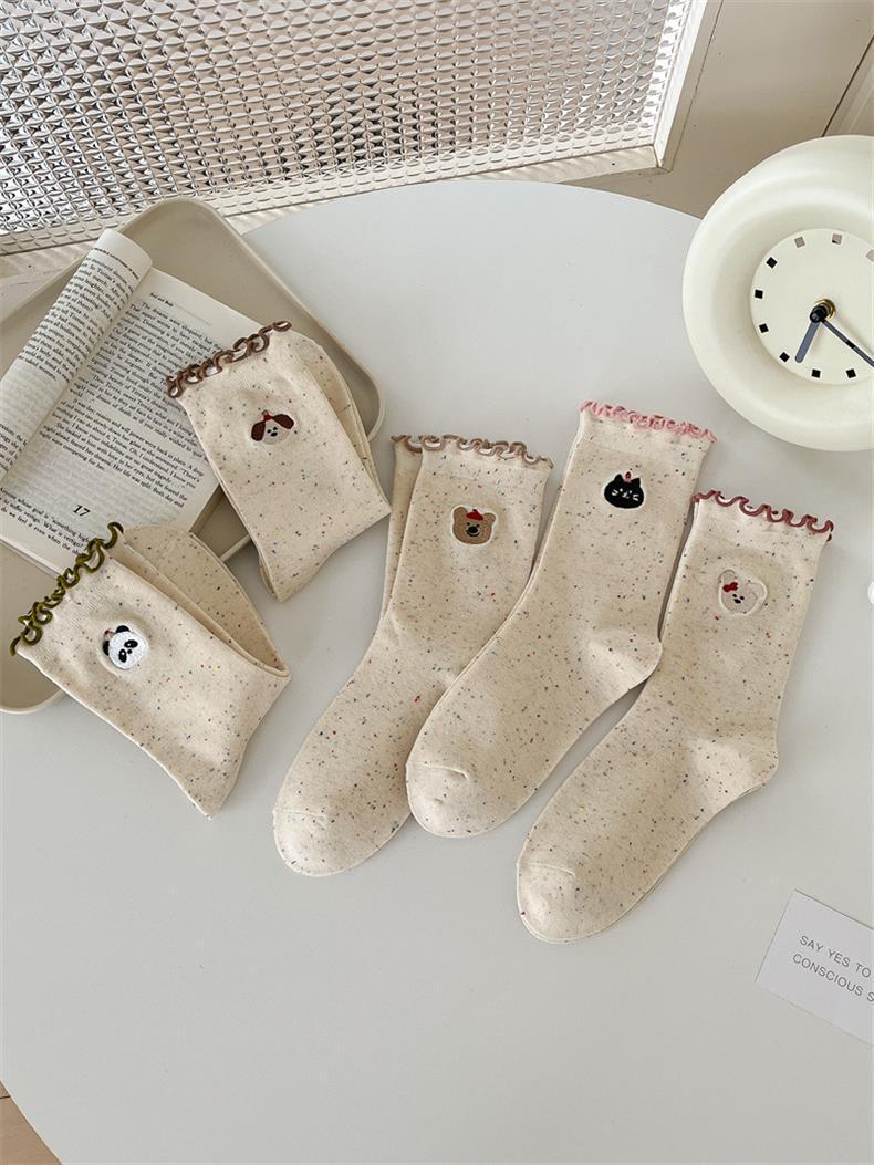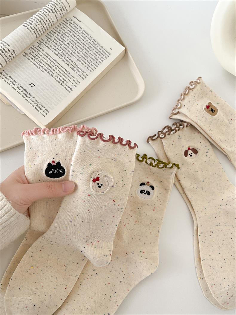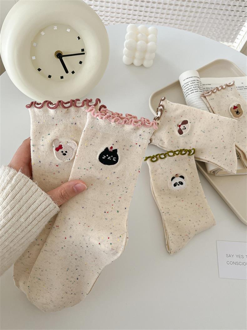 봄 및 가을 어린이를위한 사랑스러운 양말 중간 길이 양말 Ins 트렌디 한 퓨어 코튼 레이스 스타킹 여성의 귀 가장자리 포장 스타킹 여름 얇은