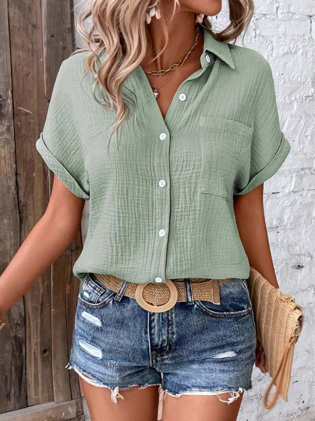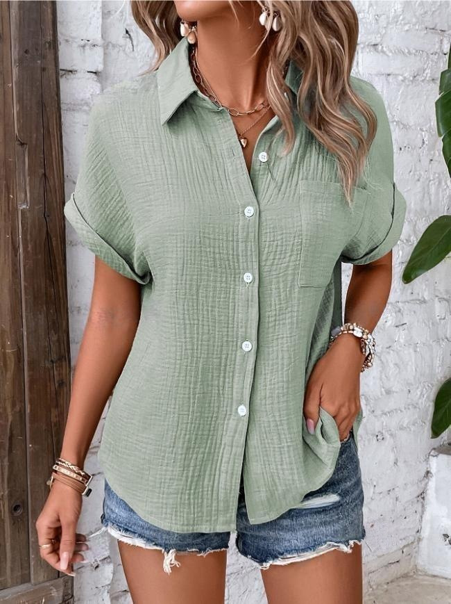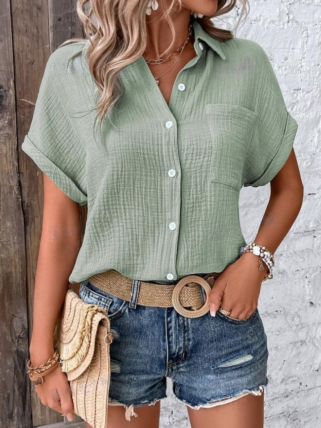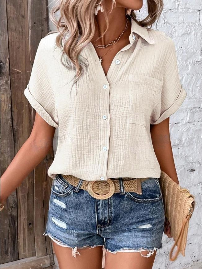 국경 2025 아마존 여름 새로운 유럽과 미국 여성의 순면 셔츠 단색 캐주얼 버튼 셔츠 여성스토어 가기