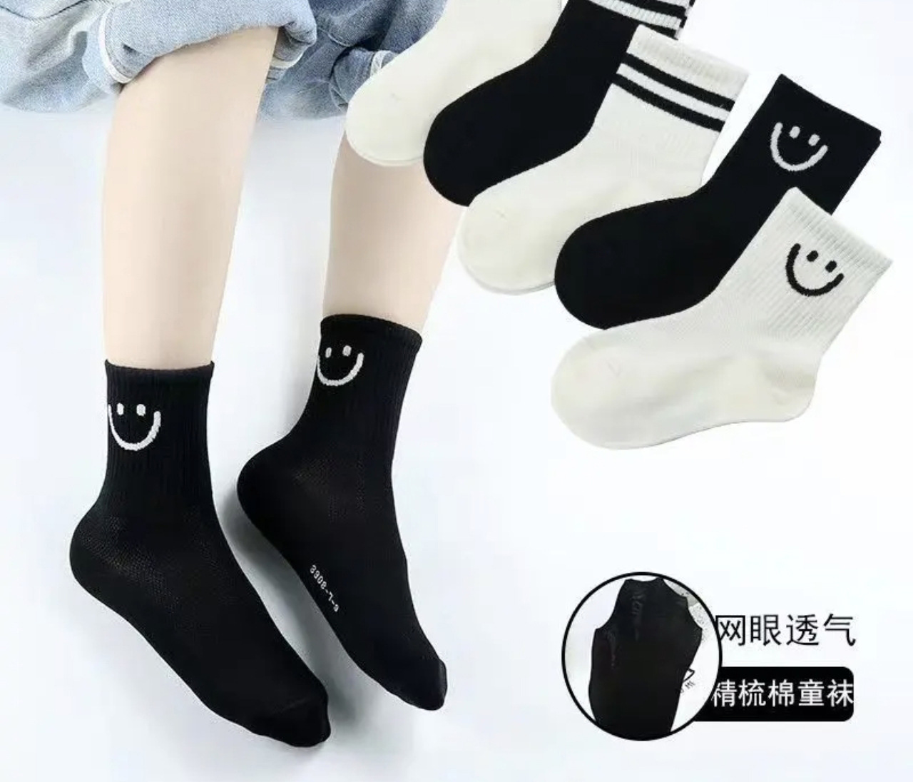 어린이 여름 여자 메시 양말 소년 · 소녀 얇은 한국식 스마일리 중간통 고조 양말 스포츠 양말스토어 가기