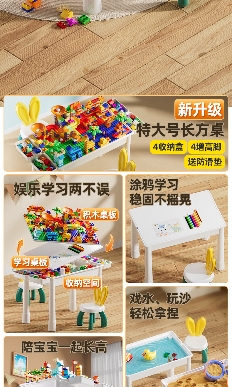 • 업그레이드 버전 - 초대형 직사각형 테이블 + 410개의 대형 입자 + 귀여운 토끼 의자 60.5*37.5*39.5