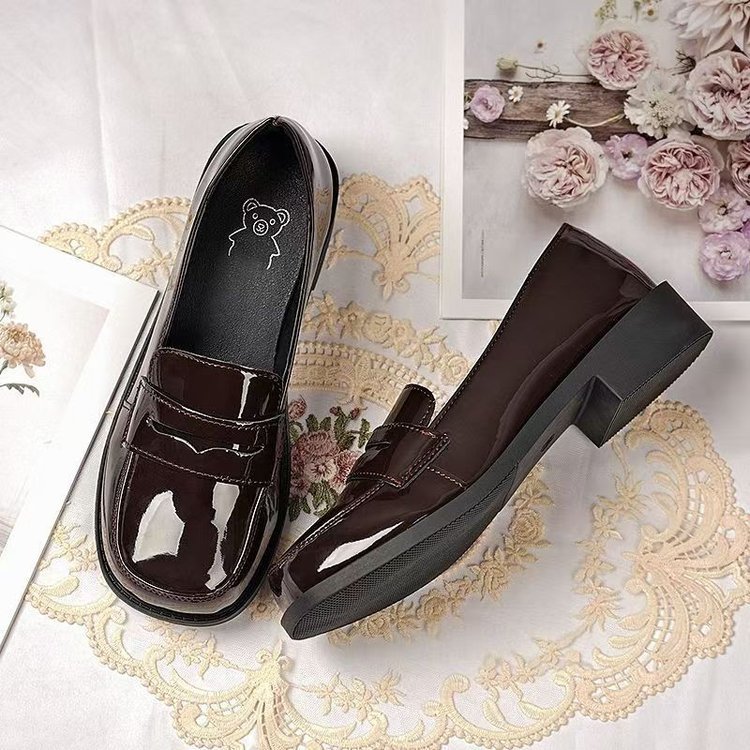 봄 일본 기본 JK 작은 가죽 신발 여성 특허 가죽 광장 머리 학교 유니폼 신발 밝은 가죽 로 리타 신발