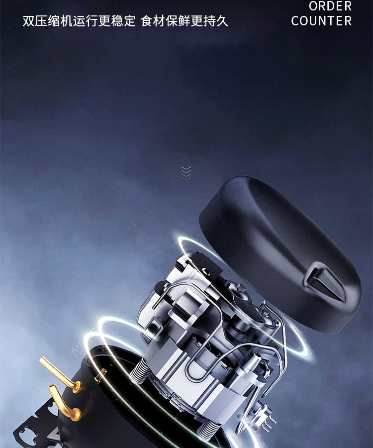 • 1.5*0.8*0.96米直冷两阶梯/上下冷冻/纯铜管/双压