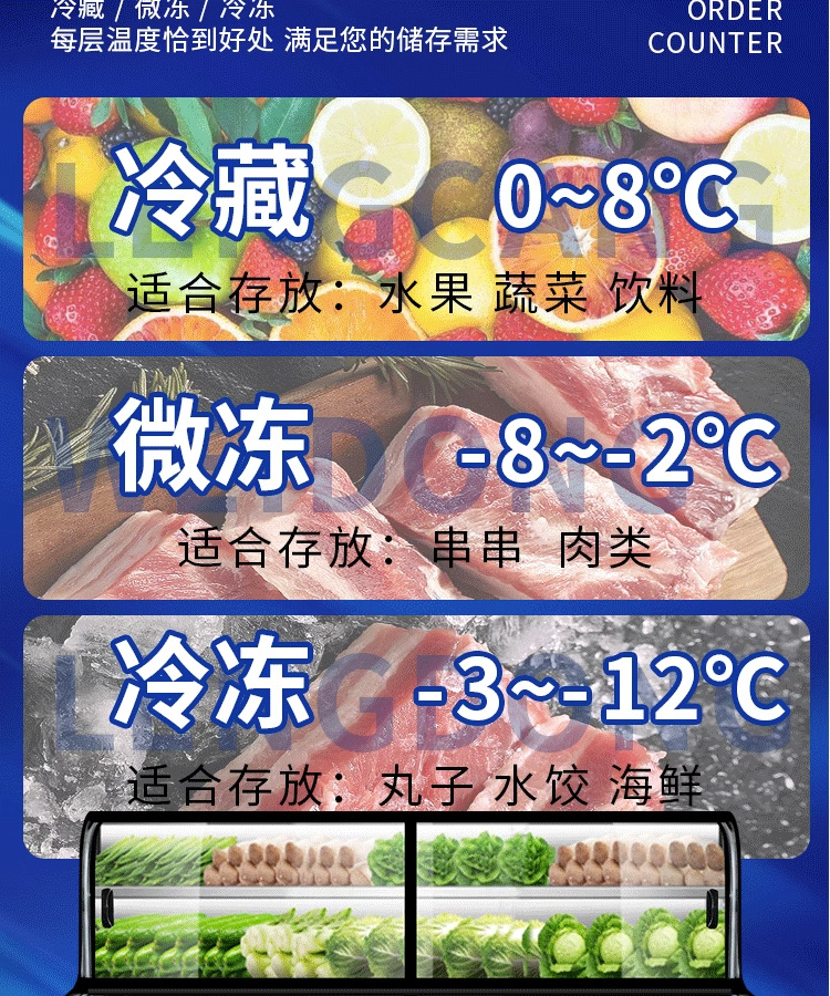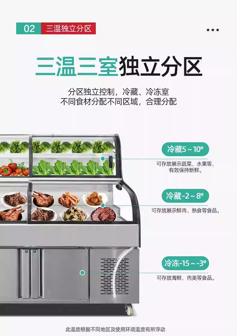 • 1.5*1*1.08米直冷三阶梯/上下冷冻/纯铜管/双压