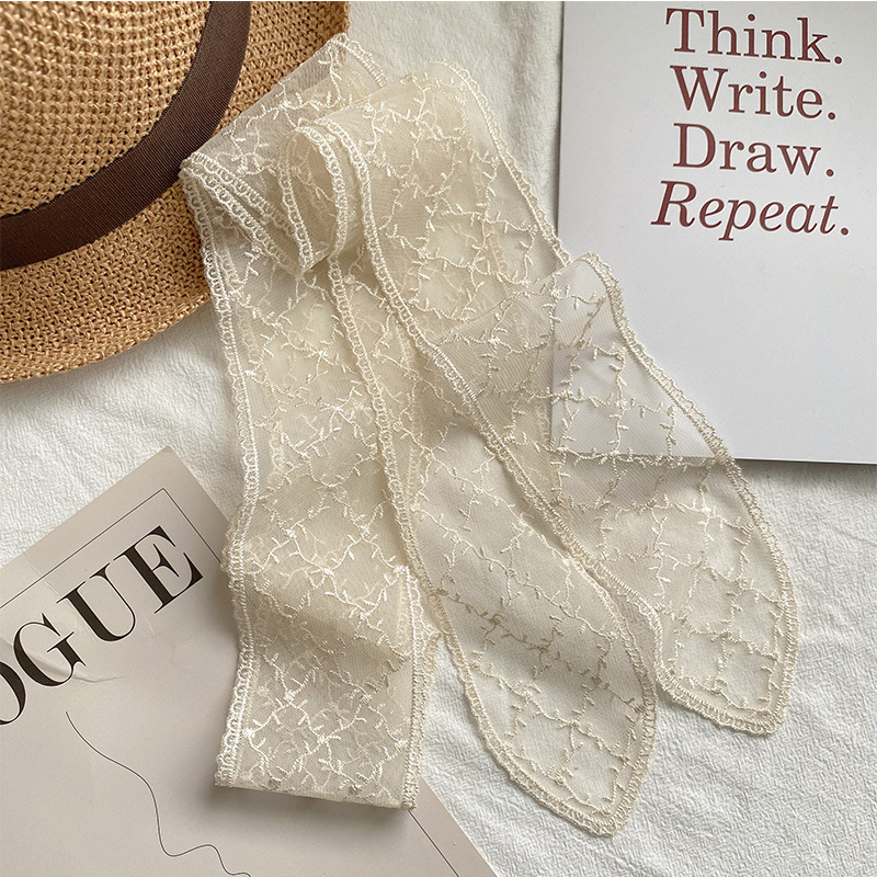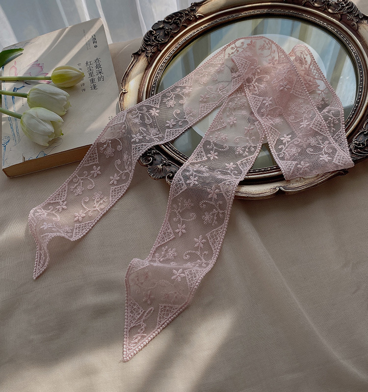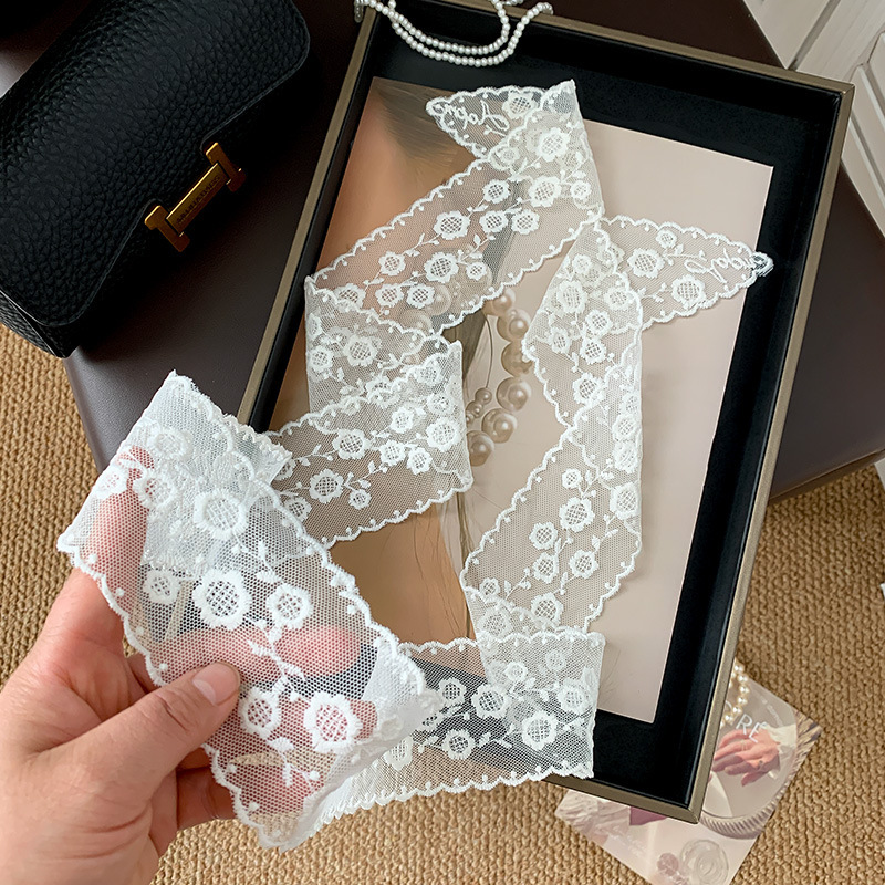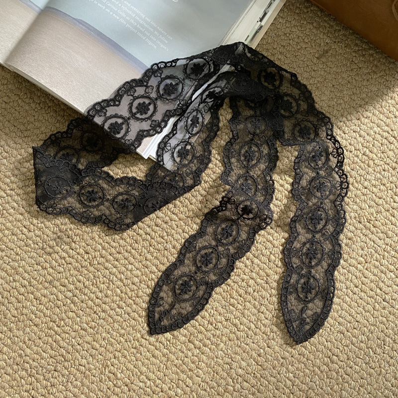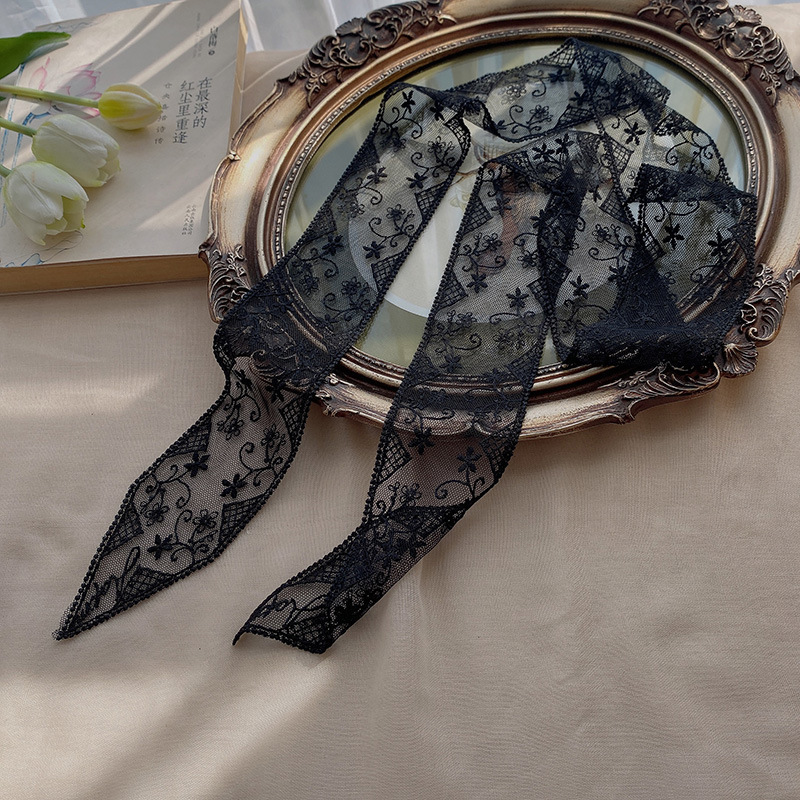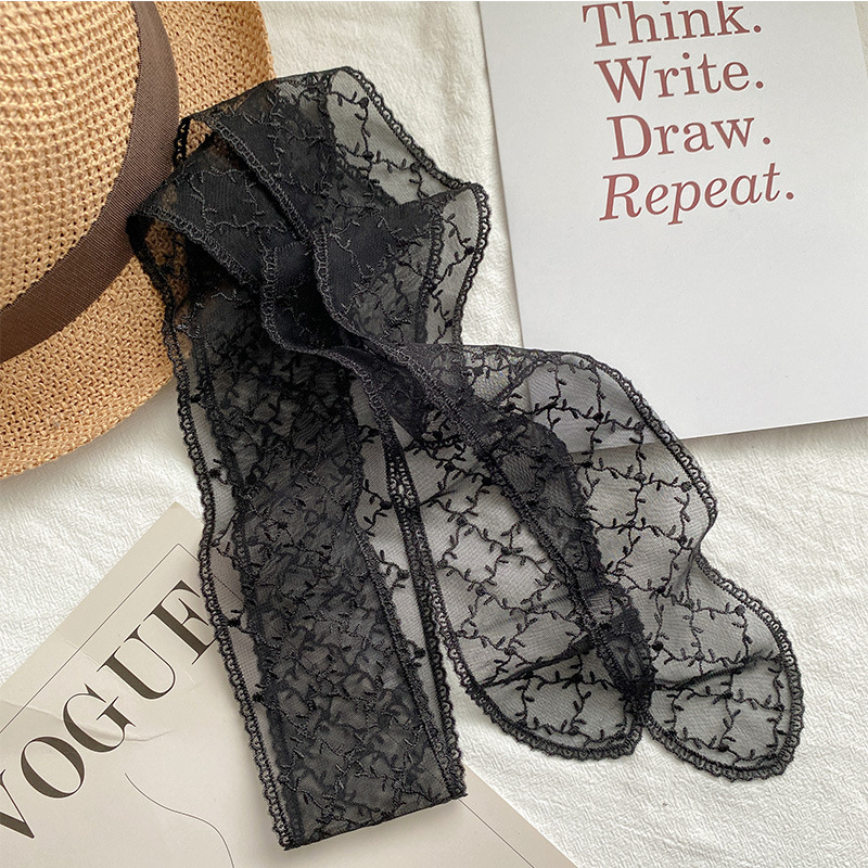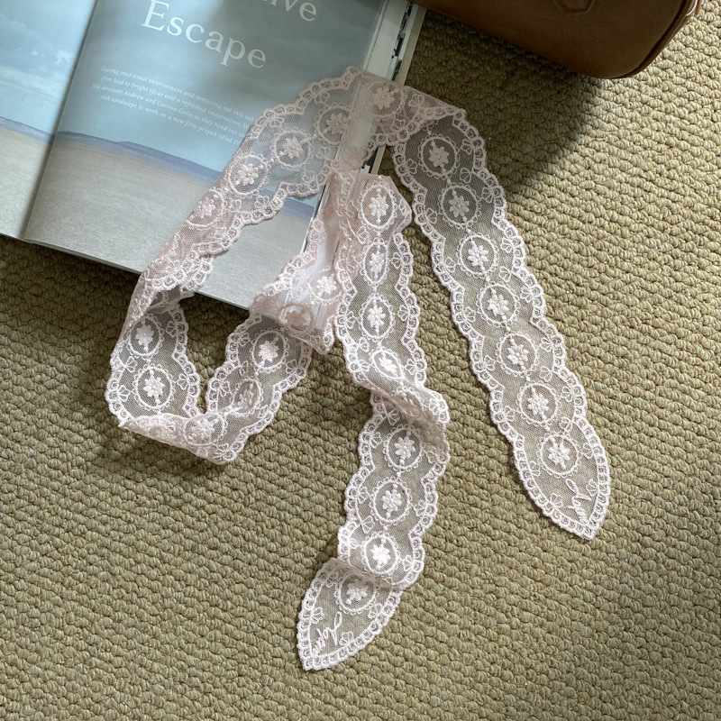 한국 우아한 레트로 레이스 벨트 헤어 벨트 긴 리본 장식 스카프 작은 실크 스카프 목걸이 스카프 여성