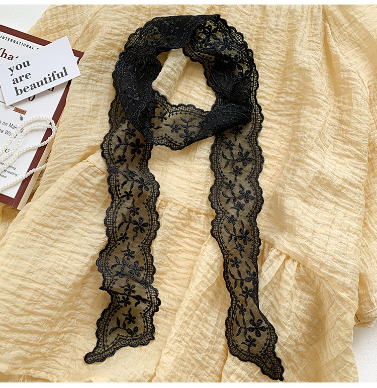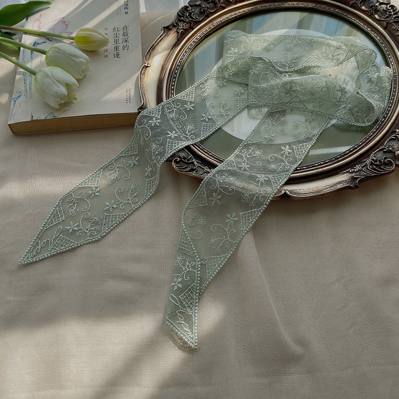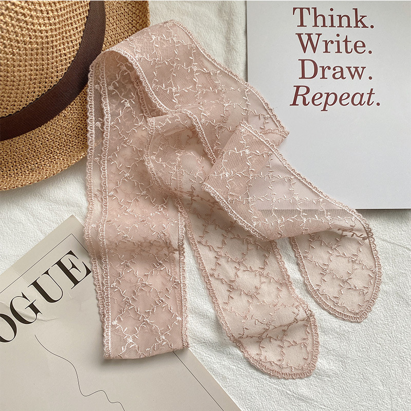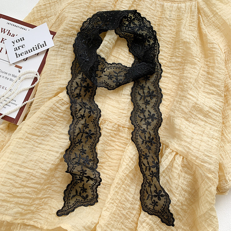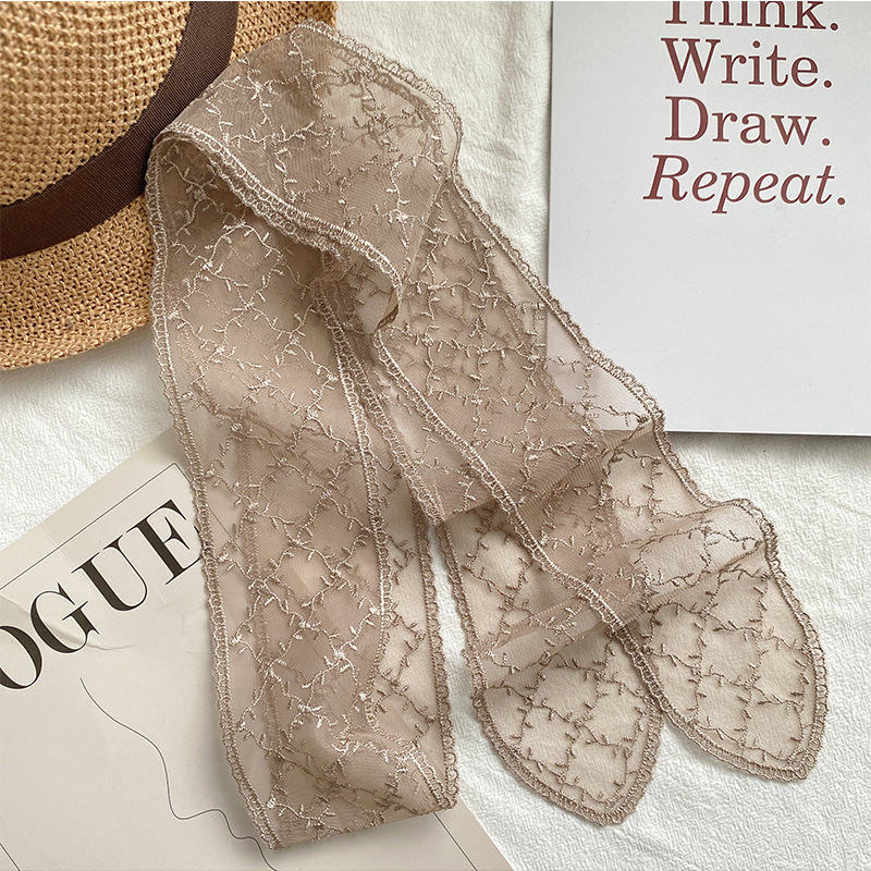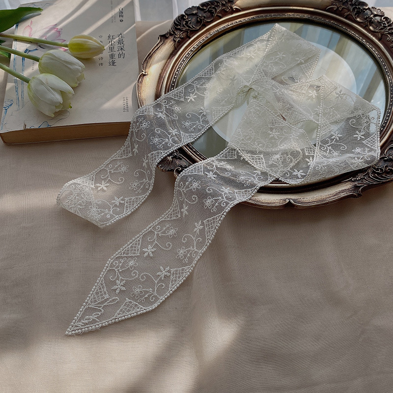 한국 우아한 레트로 레이스 벨트 헤어 벨트 긴 리본 장식 스카프 작은 실크 스카프 목걸이 스카프 여성