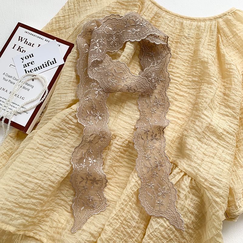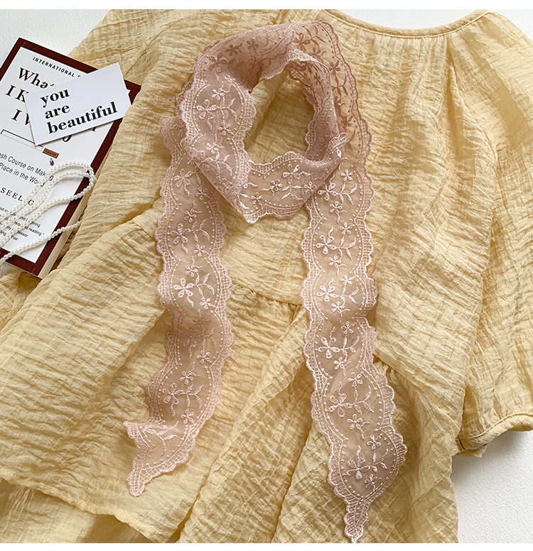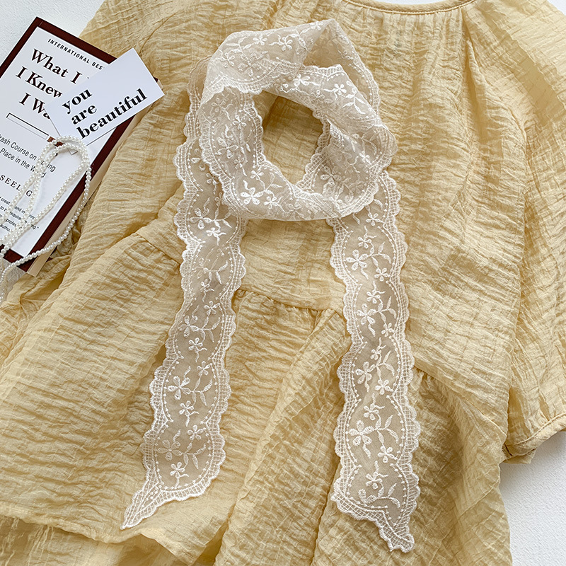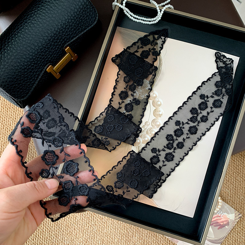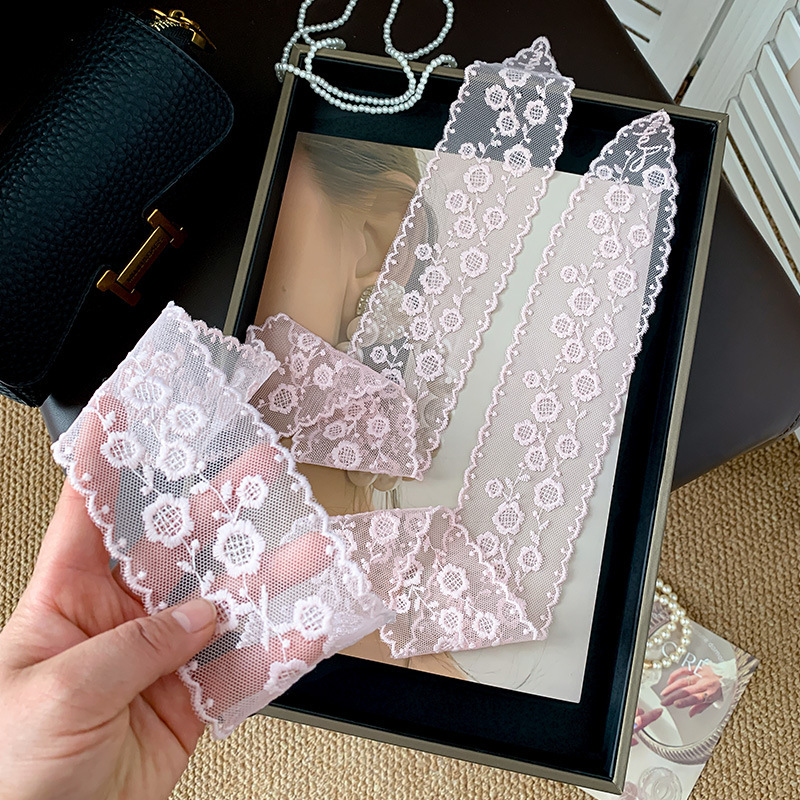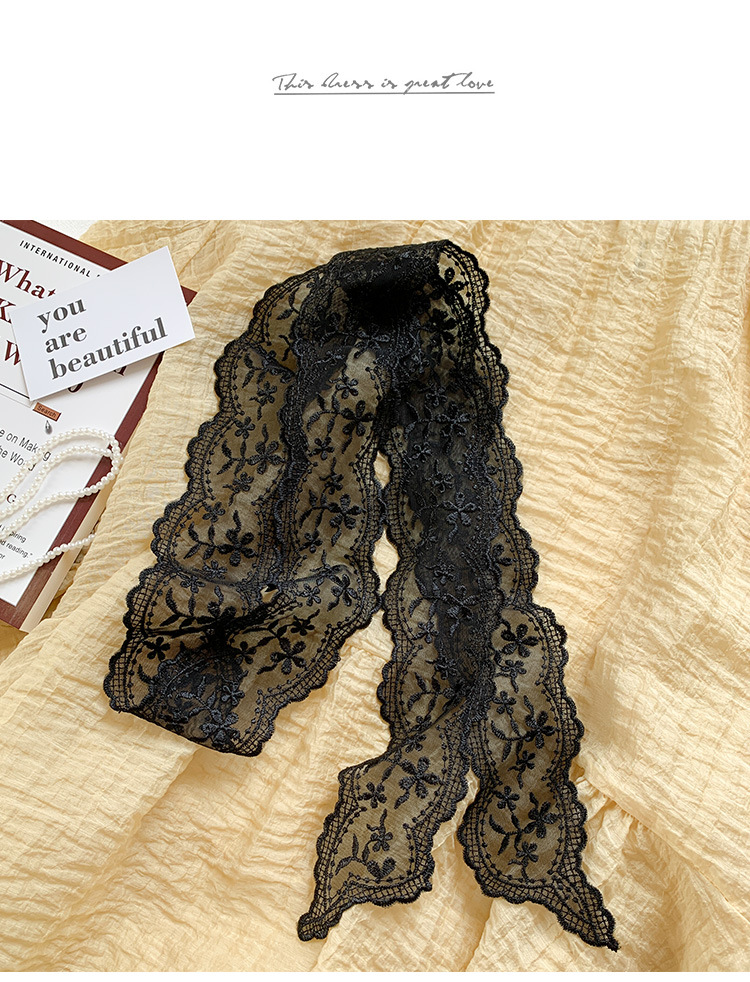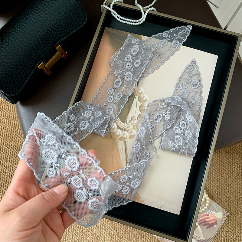 한국 우아한 레트로 레이스 벨트 헤어 벨트 긴 리본 장식 스카프 작은 실크 스카프 목걸이 스카프 여성
