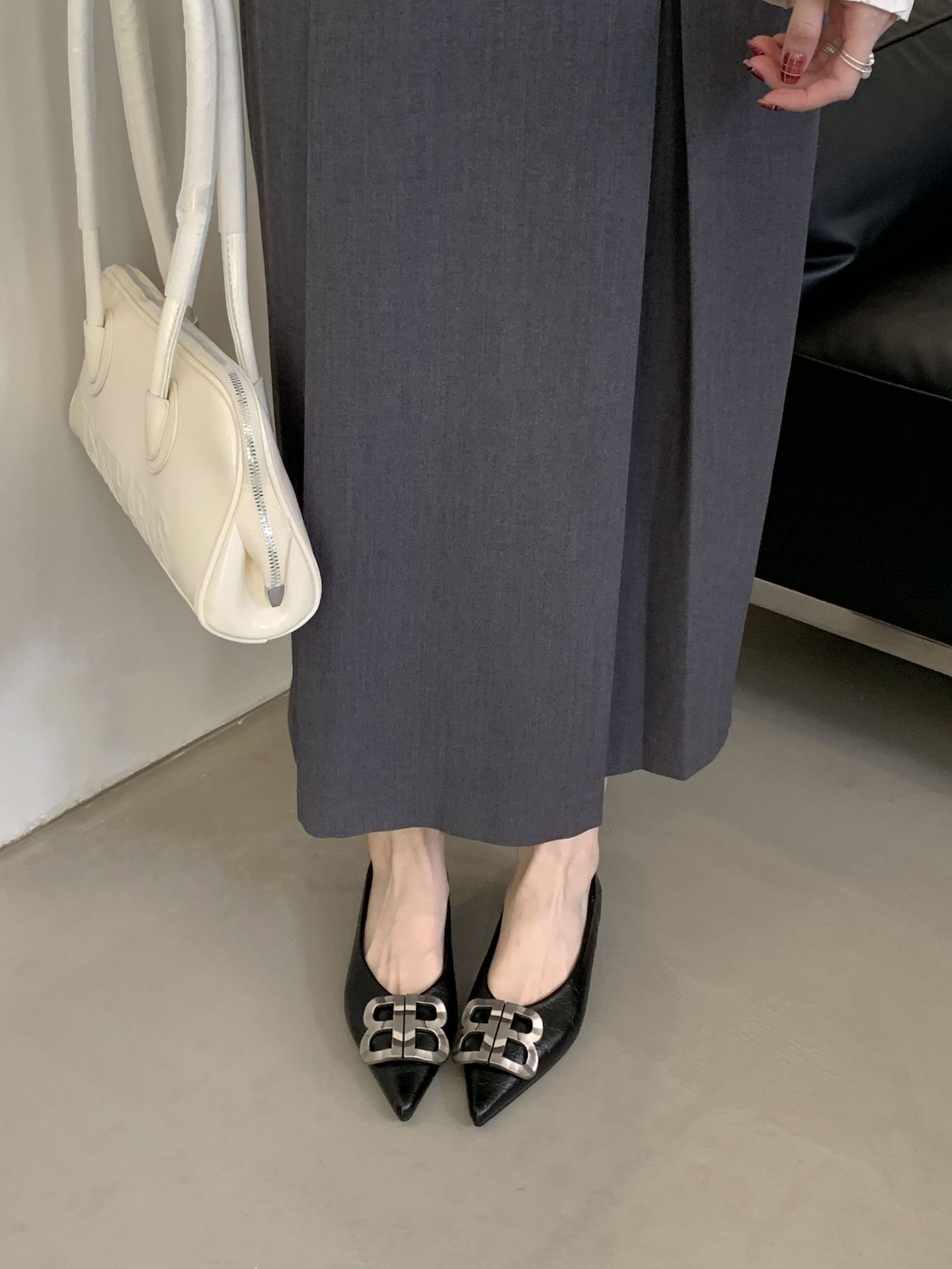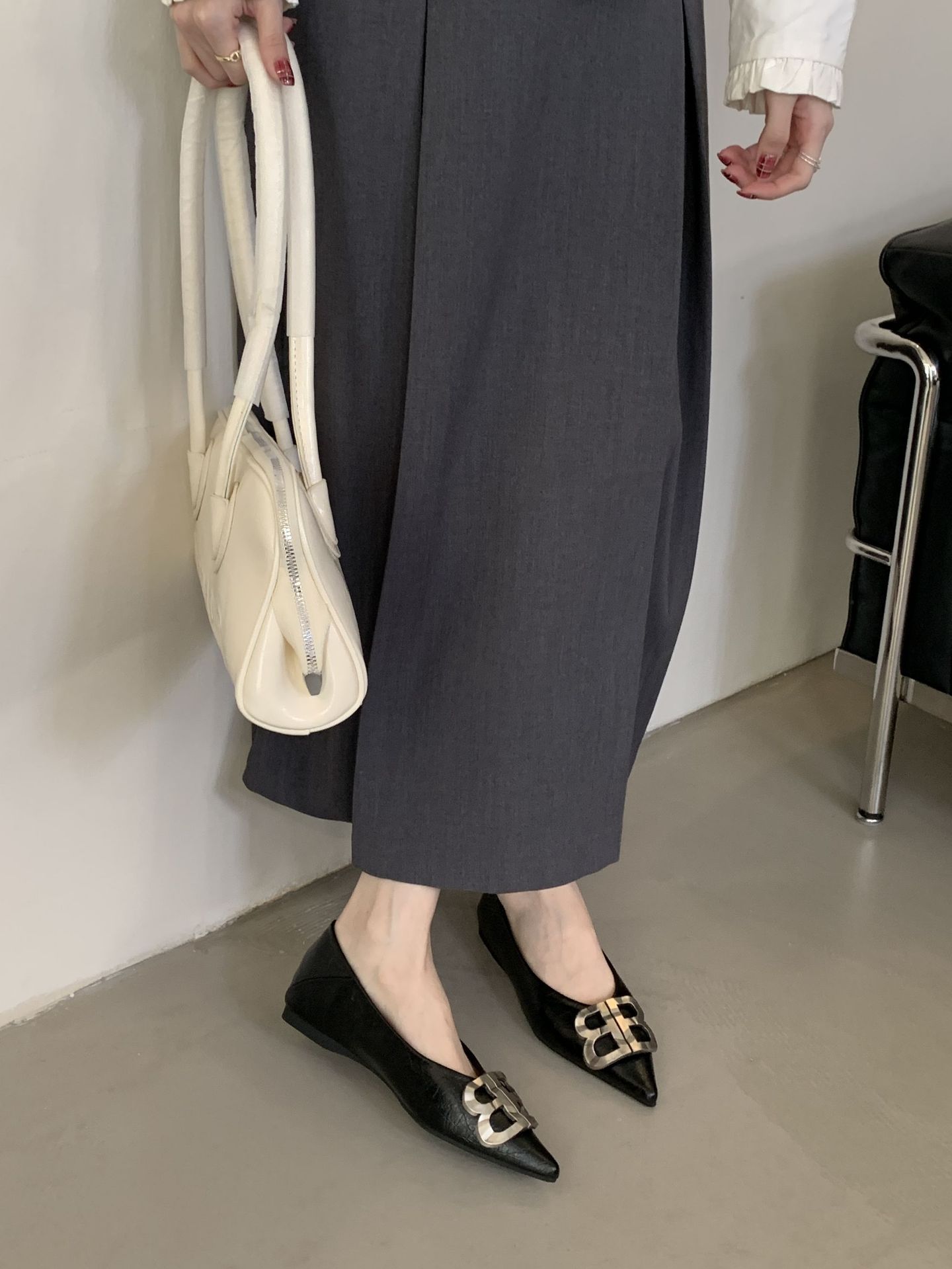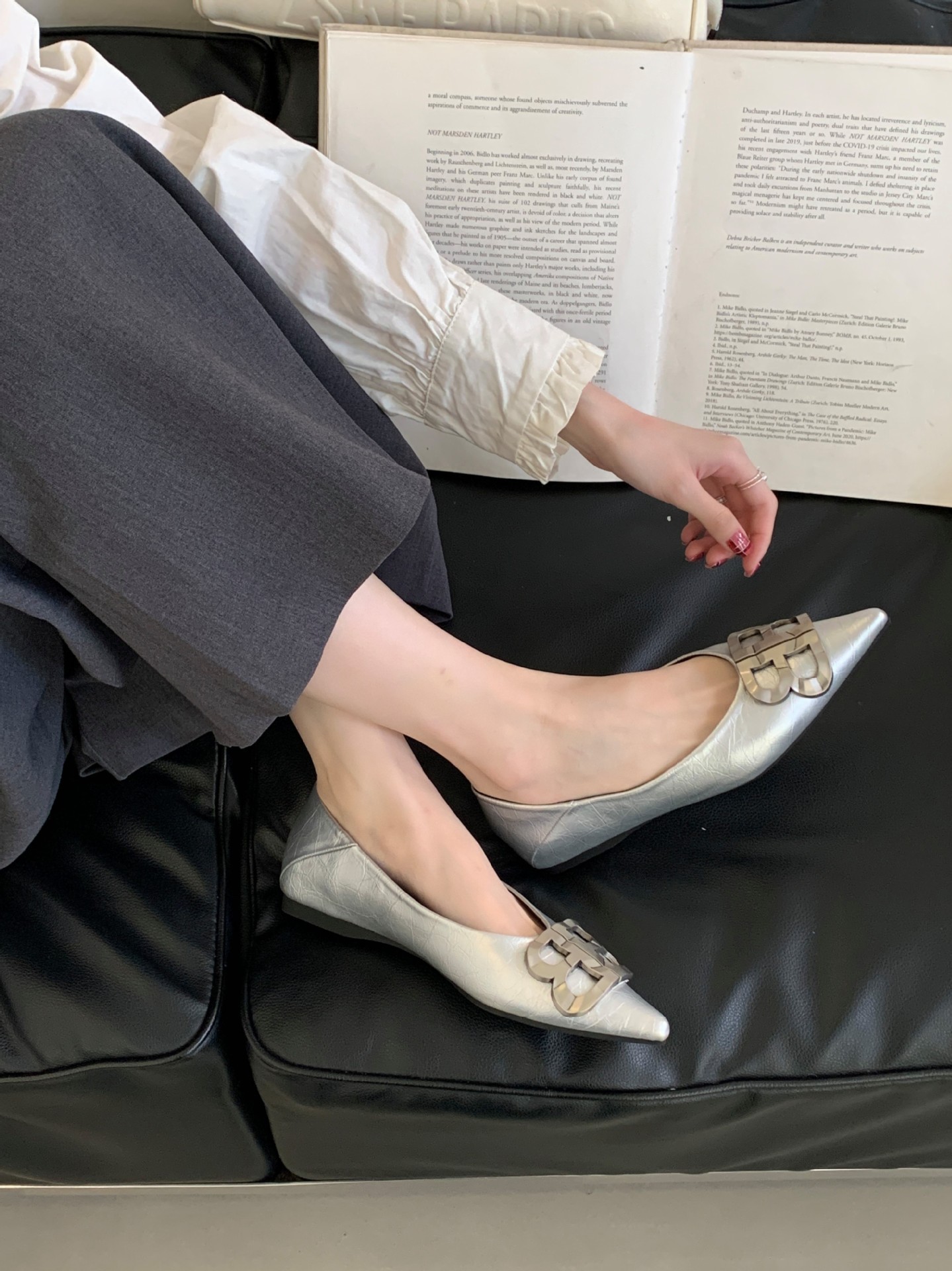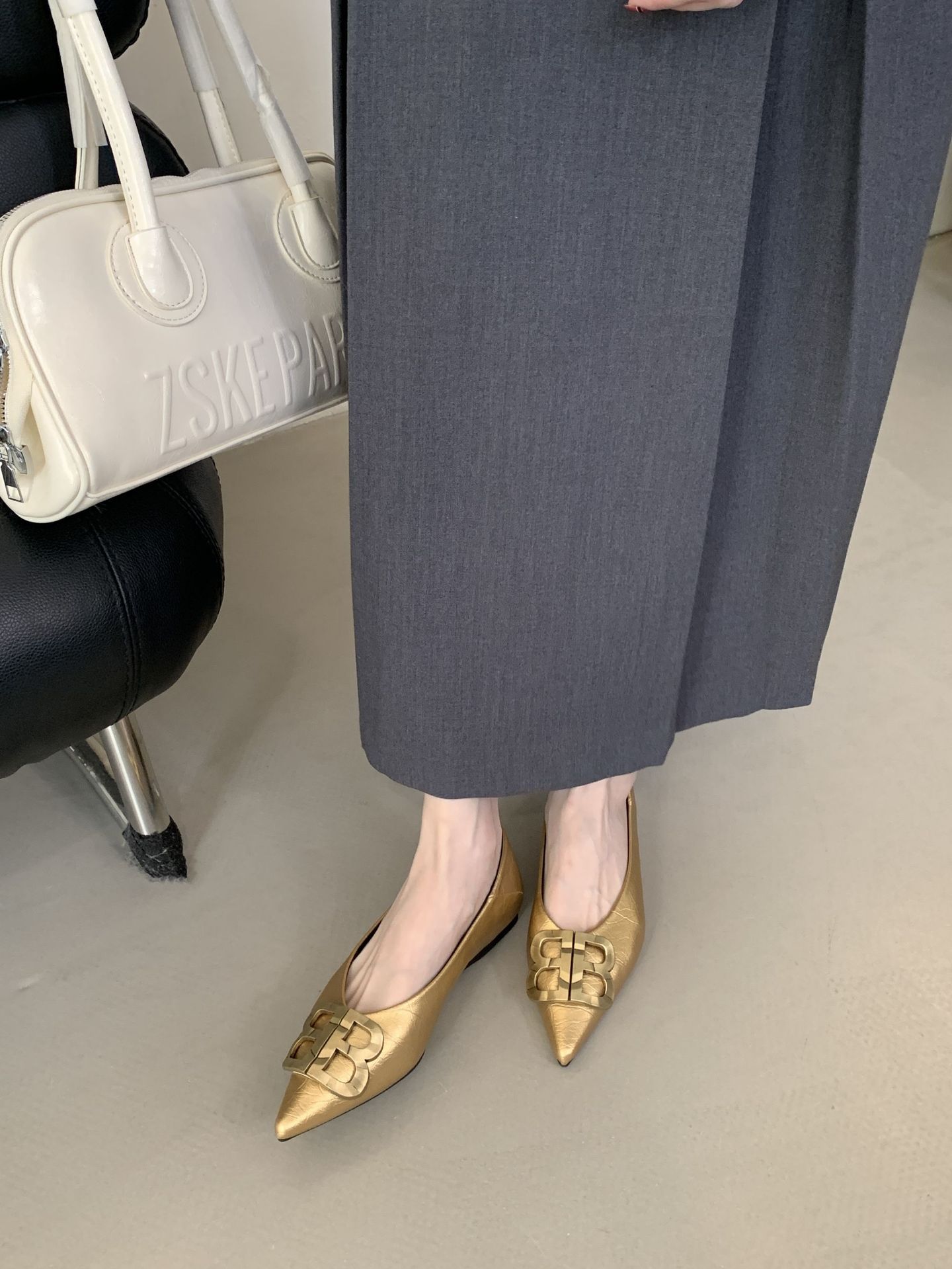 2025 새로운 봄 신발 여성 패션 유럽과 미국 스타일의 금속 버클 여성 신발 뾰족한 얕은 입 신발 여성 플랫 신발 여성스토어 가기