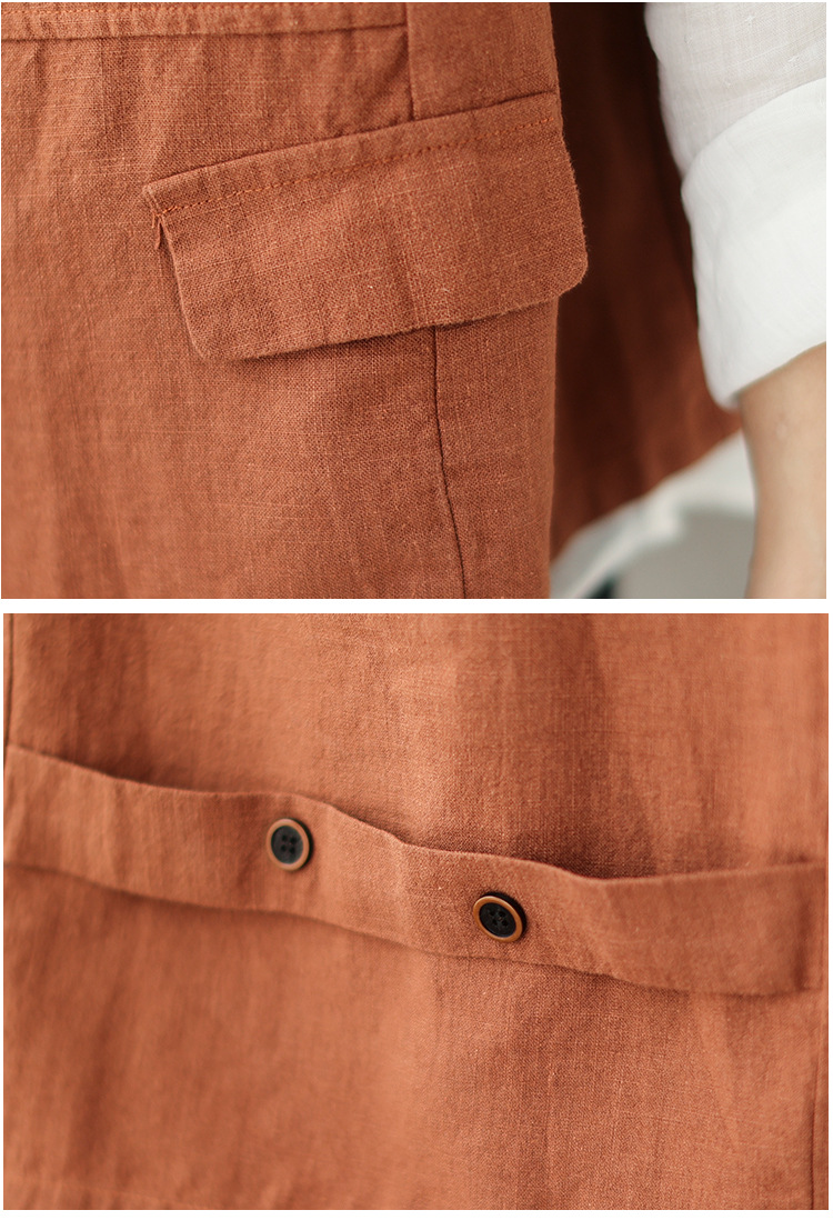 리얼 샷 2025 봄 빈티지 오래 된 V-넥 버튼은 솔리드 컬러 예술적 짧은 면 및 리넨 허리 여성용 외부 착용