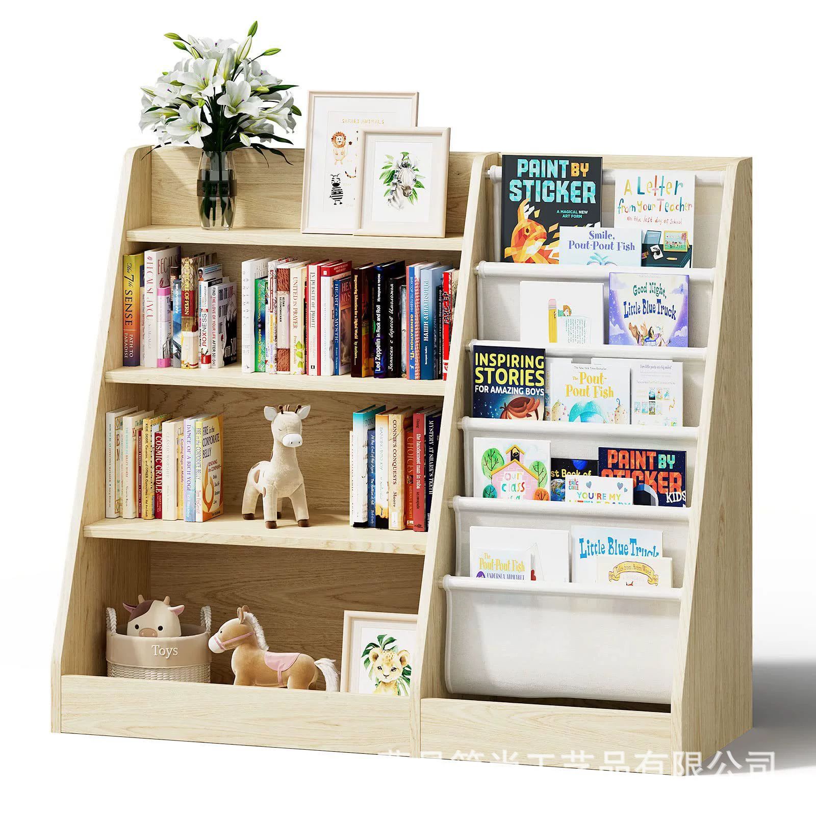 국경 간 뜨거운 판매 진짜 나무 어린이 책장 다기능 저장 랙 바닥 형 가정용 다층 저장 랙 그림책 랙스토어 가기