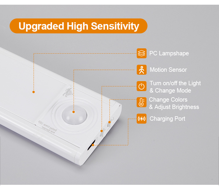 지능형 led 인체 유도 라이트 바 충전식 자체 접착 고양이 눈 언덕 밤 조명 옷장 현관 와인 캐비닛 조명스토어 가기