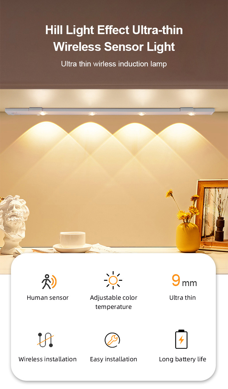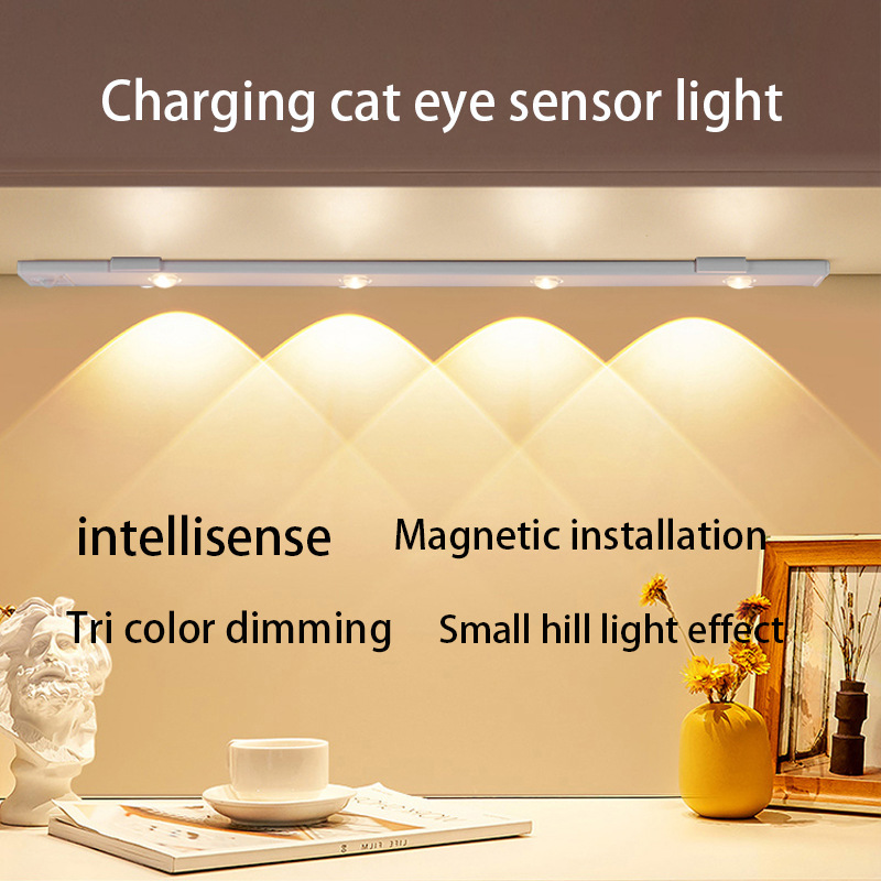 지능형 led 인체 유도 라이트 바 충전식 자체 접착 고양이 눈 언덕 밤 조명 옷장 현관 와인 캐비닛 조명