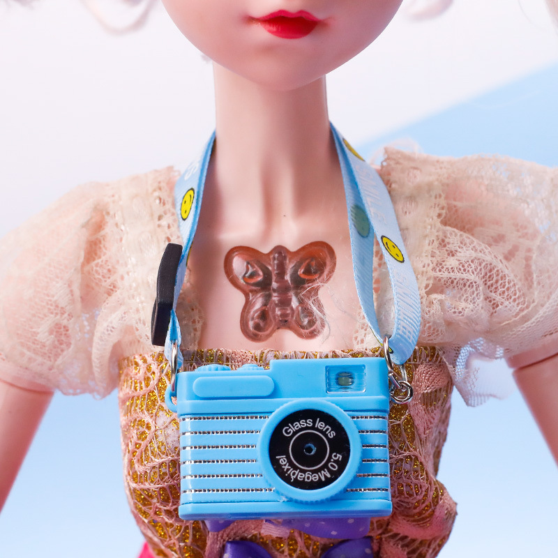 인형 개 봉제 인형 웃는 리본 스트랩 사운드 미니 카메라 펜던트 만화 카메라 목걸이 펜던트