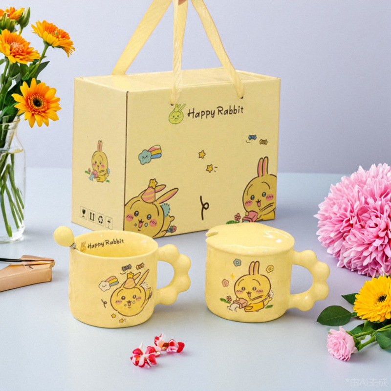 뚜껑과 스푼이 달린 귀여운 버터 세라믹 머그잔, 오프닝 이벤트를 위한 고급스러운 생일 선물, 기념품 선물 컵