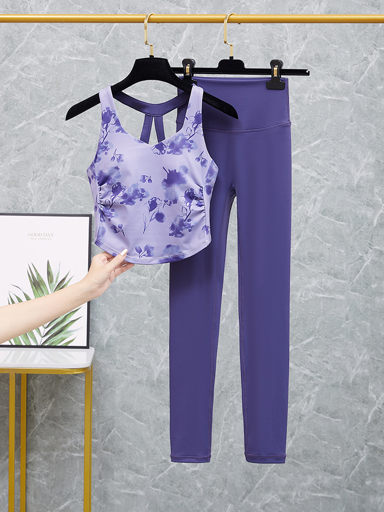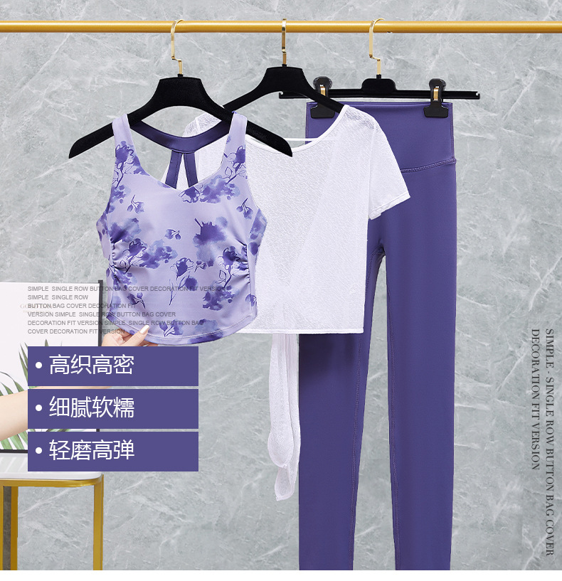 요가 의류 여성의 2025 새로운 반팔 스포츠 피트니스 필라테 훈련 의류 탑 하이 센스 3 피스 세트