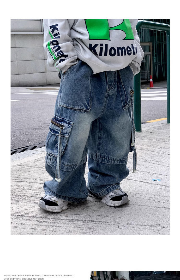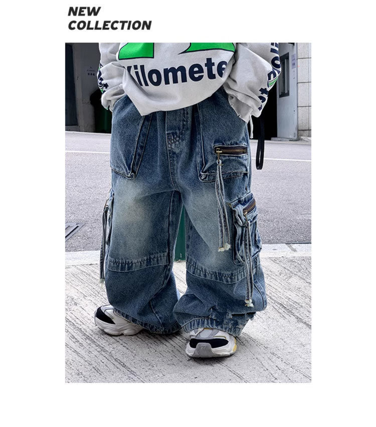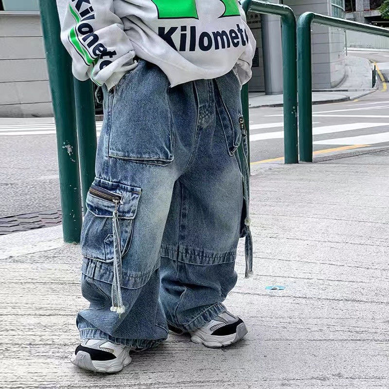 소년 청바지 봄과 가을 2025 새로운 아동복 아기 바지 어린이 스트레이트 청바지 느슨한 트렌디스토어 가기
