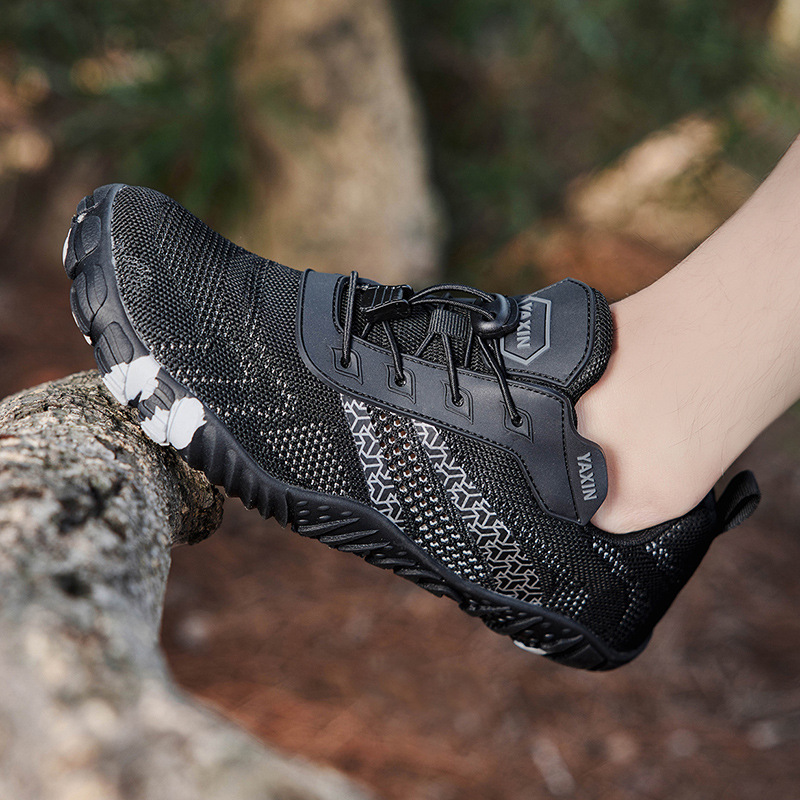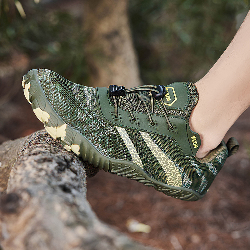 여름 새로운 국경 비행 짠 통기성 5 손가락 하이킹 신발 남성 야외 하이킹 등반 여성용 경량 미끄럼 방지 크로스 컨트리 신발스토어 가기