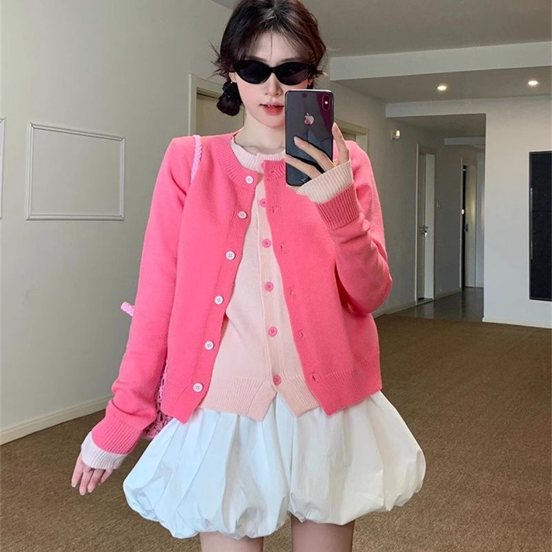 한국 스타일 바느질 가짜 투피스 카디건 스웨터 여성의 봄 가을과 겨울 게으른 스타일 부드러운 왁스 젠틀 캐주얼 올 매치 스웨터 트렌디스토어 가기