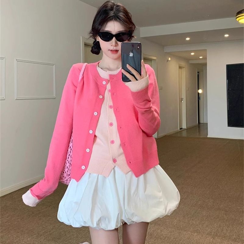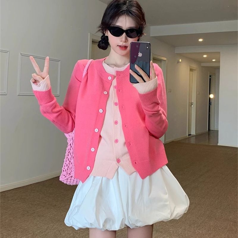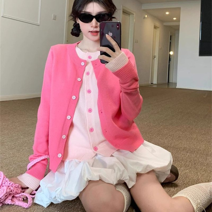 한국 스타일 바느질 가짜 투피스 카디건 스웨터 여성의 봄 가을과 겨울 게으른 스타일 부드러운 왁스 젠틀 캐주얼 올 매치 스웨터 트렌디