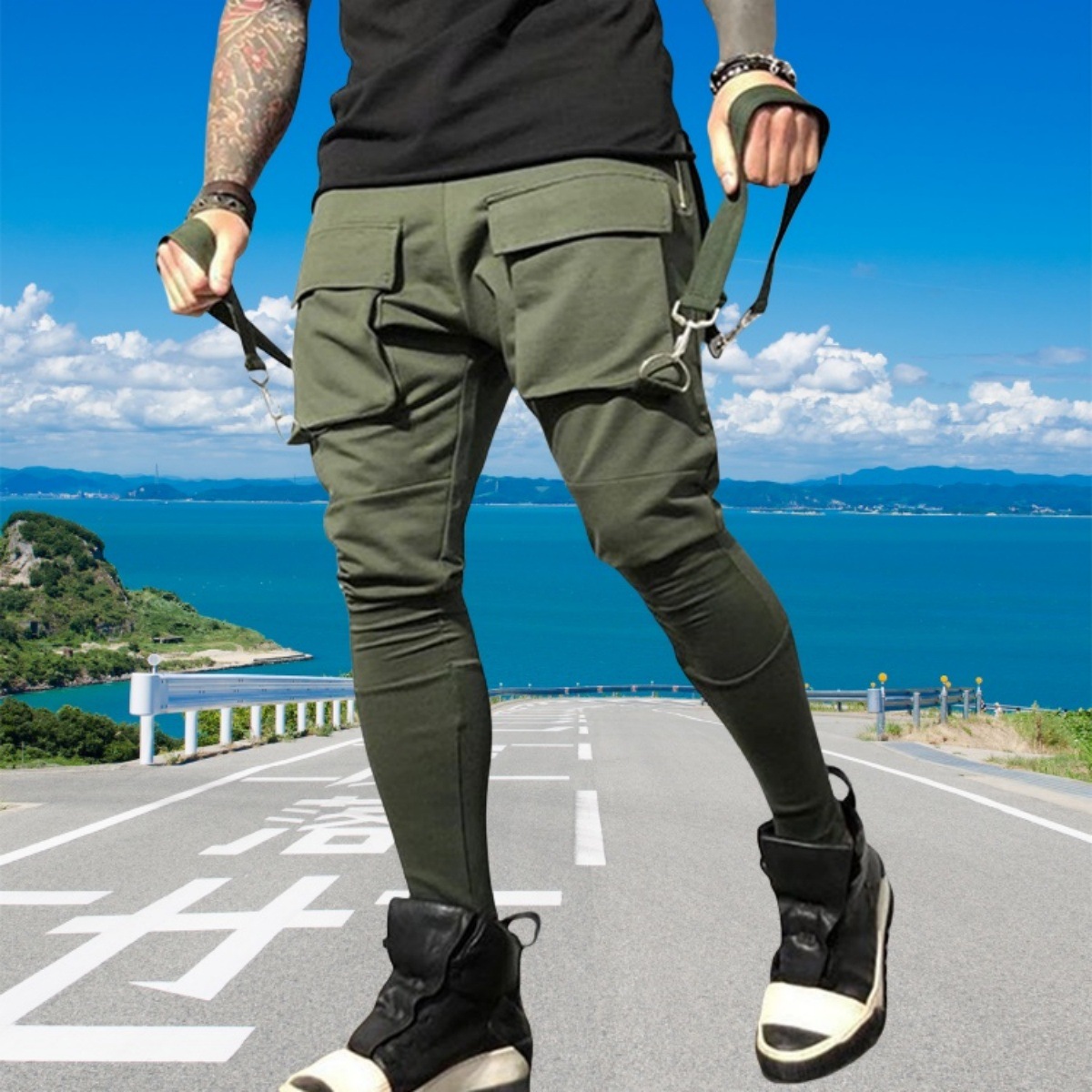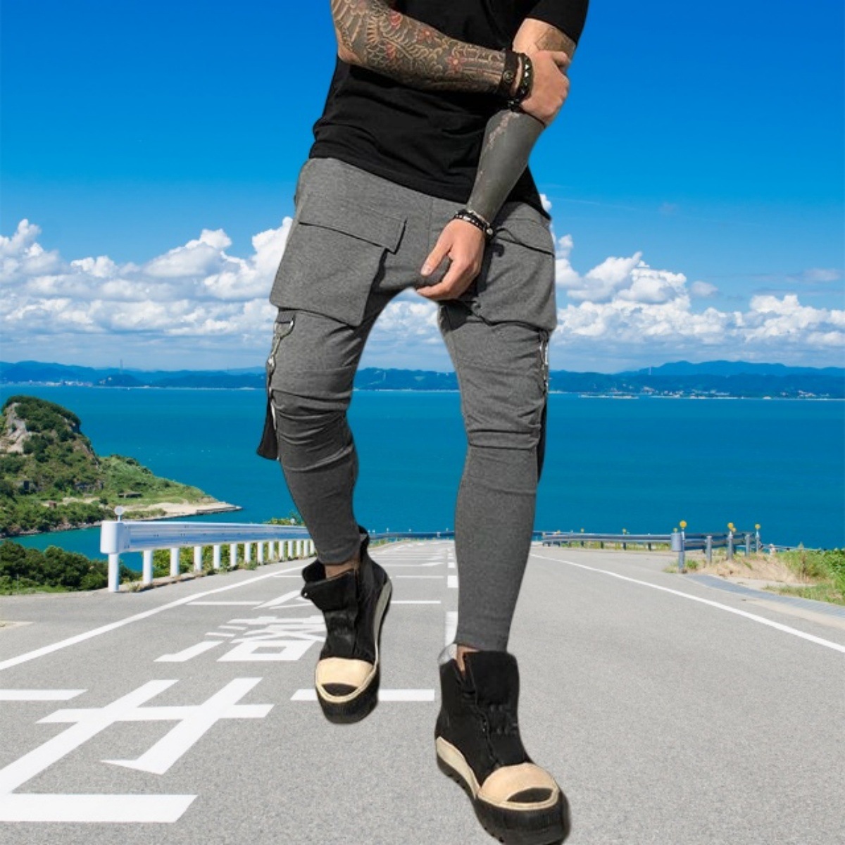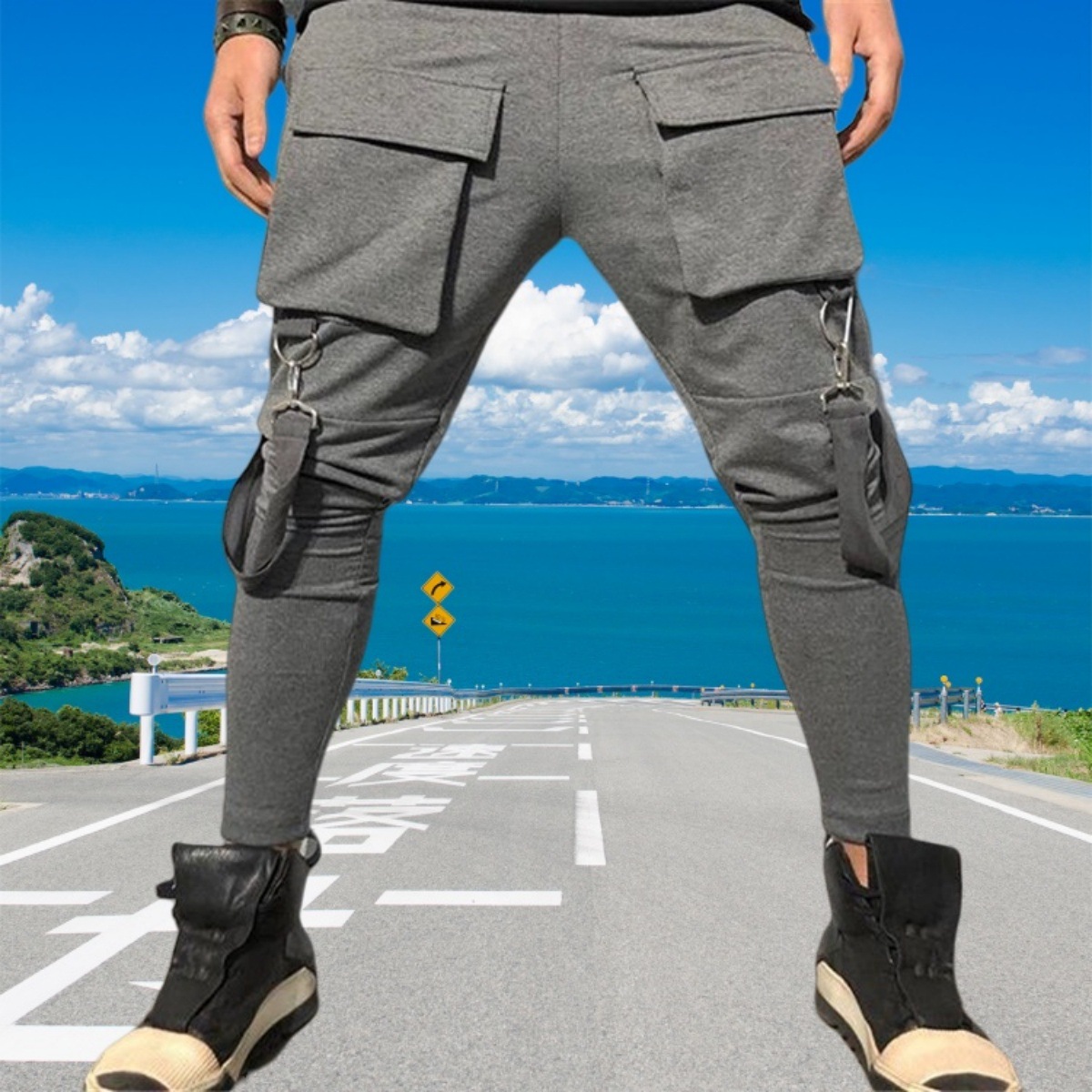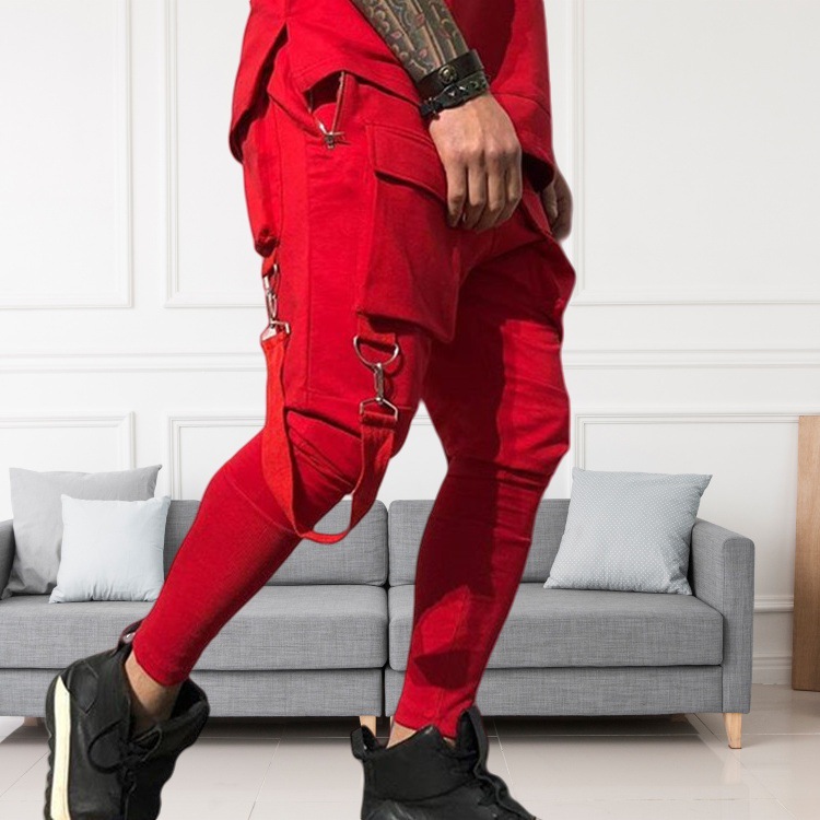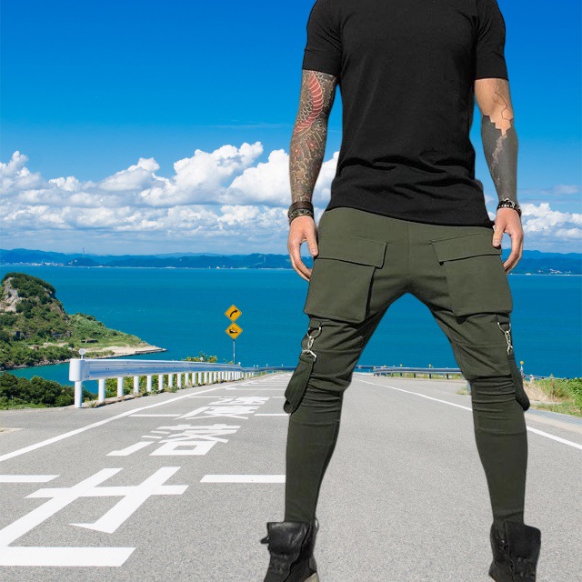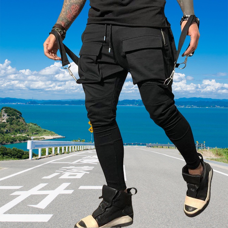 국경 새 봄과 가을 남자 풋리스 바지 남자 패션 올 매치 힙합 대형 포켓 캐주얼 스포츠 바지스토어 가기